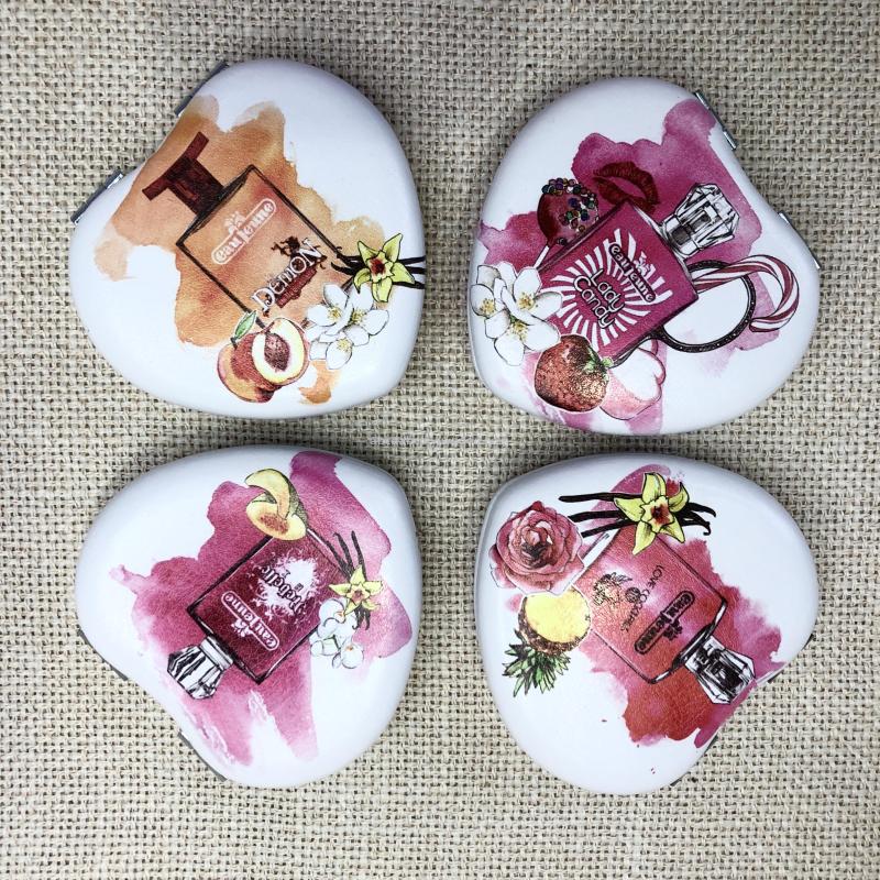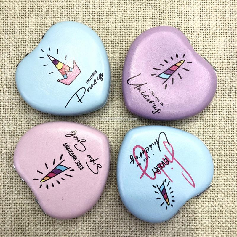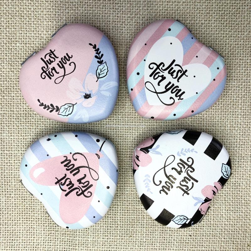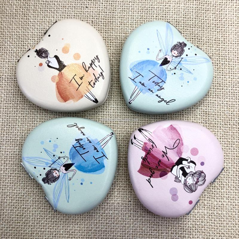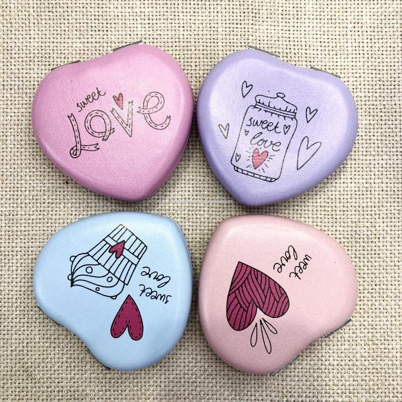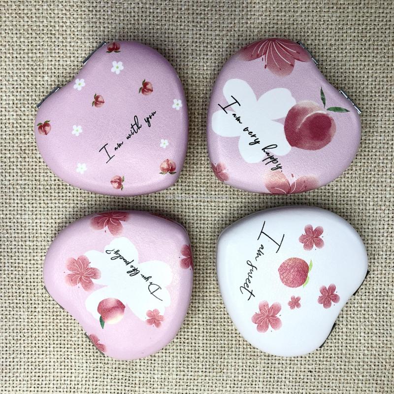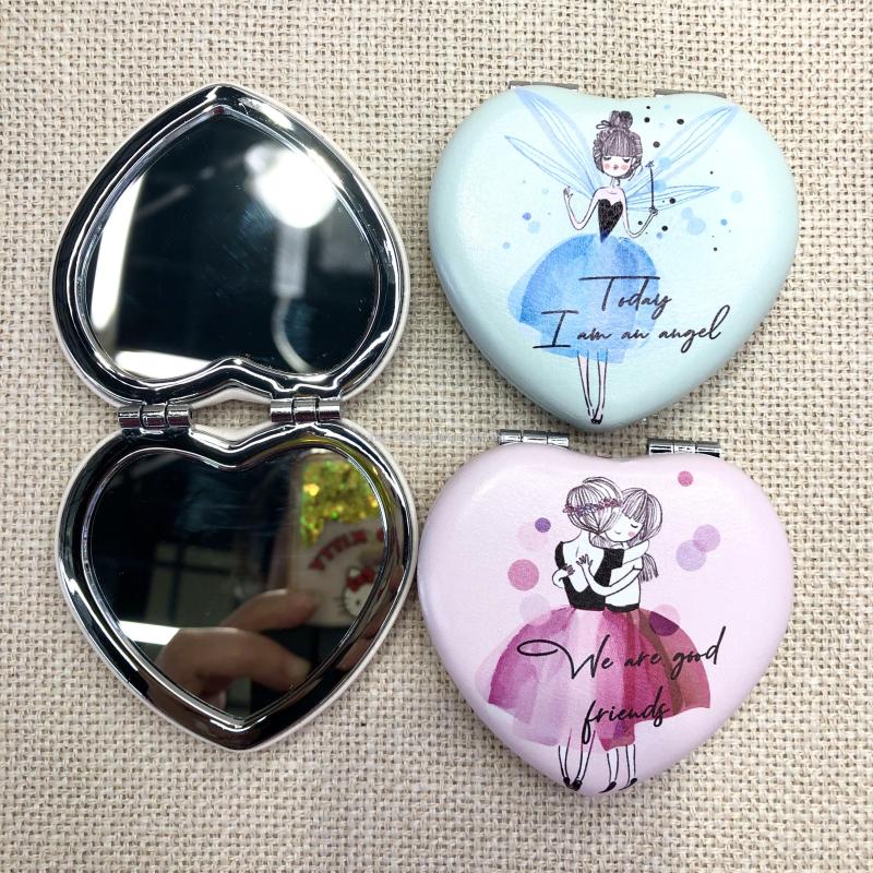 时尚小镜子爱心化妆镜双面折叠口袋镜 可定制广告礼品