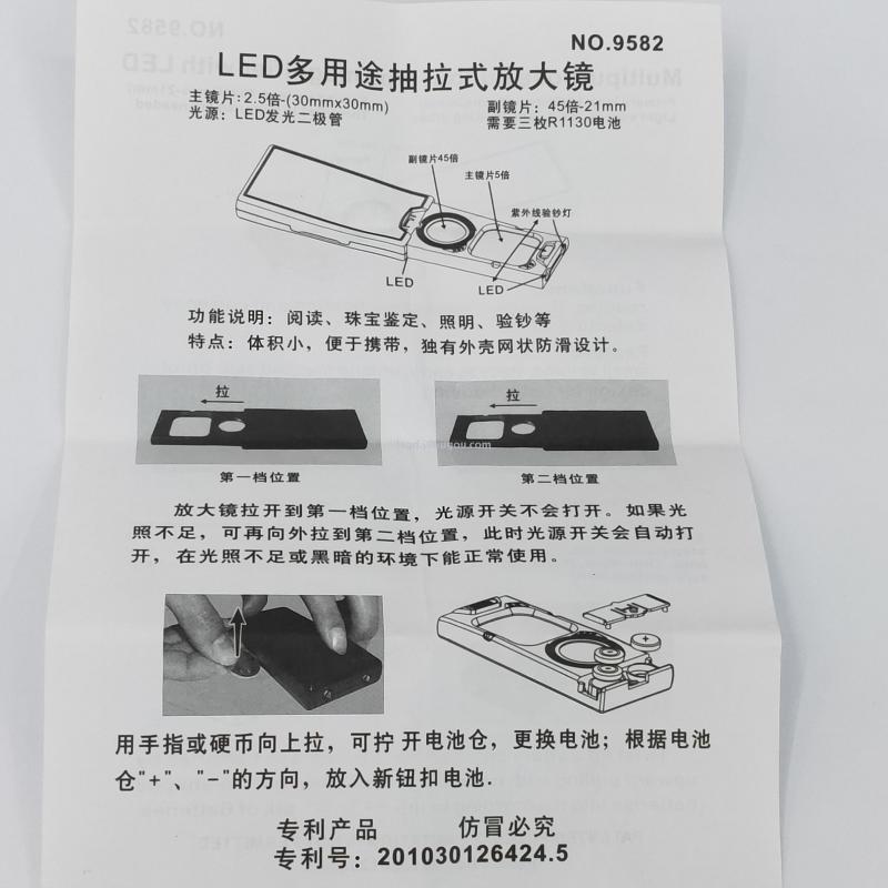 产品光源:2 LED 白光灯+1 UV 验钞灯