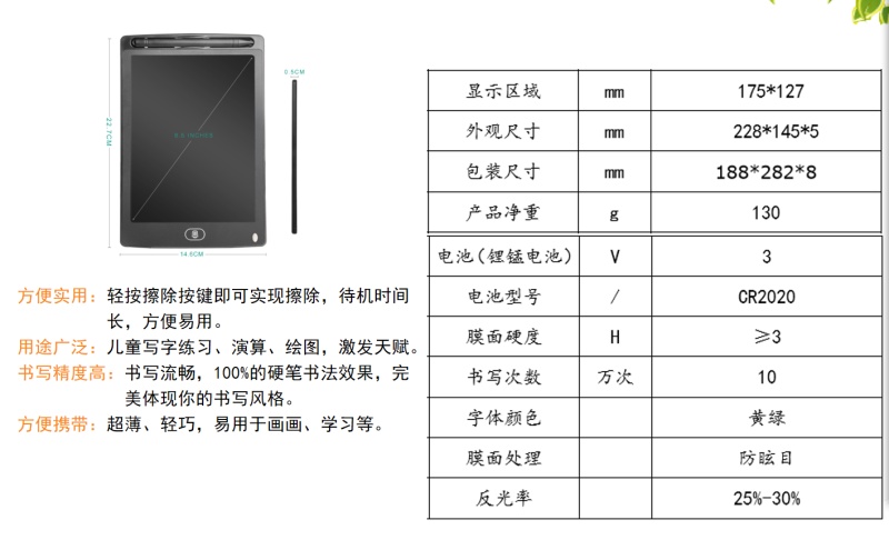 1.产品尺寸:23.5*15.4*0.53cm 屏幕尺寸:162x126mm