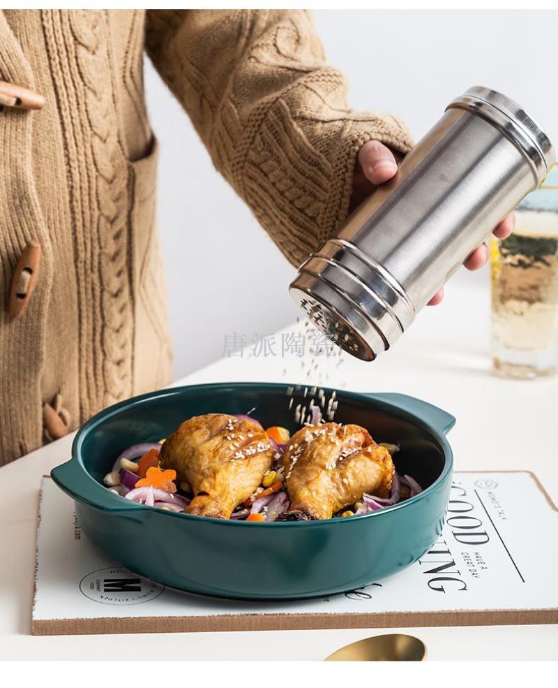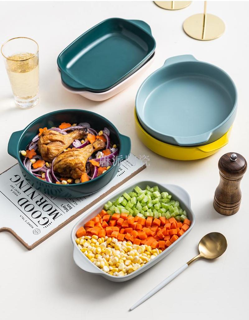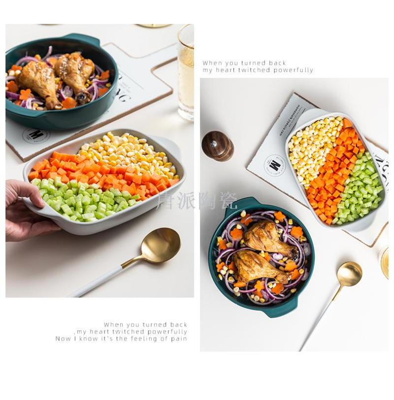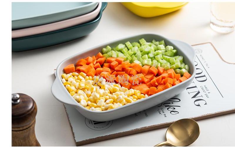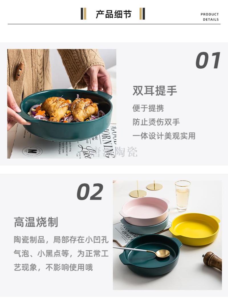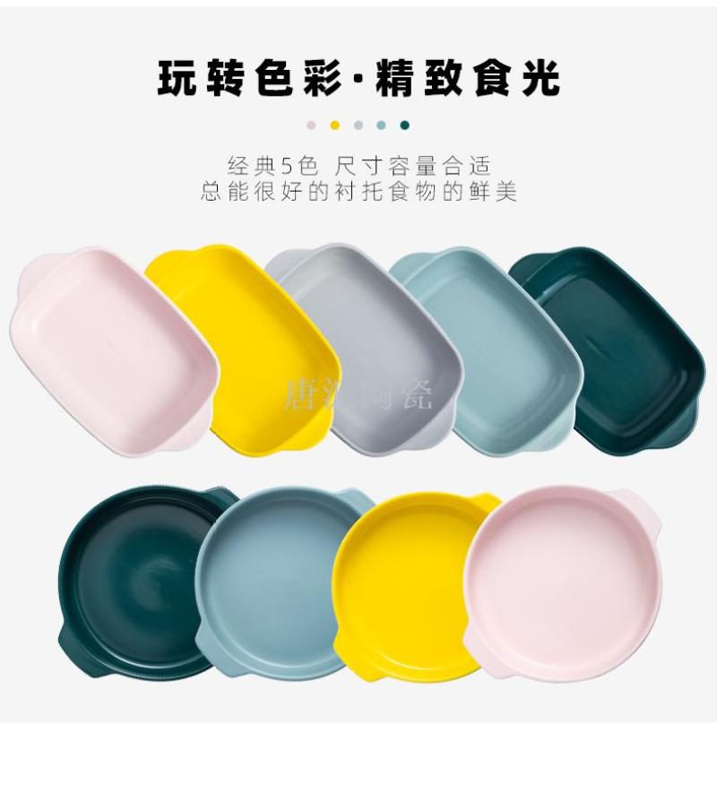 新款景德镇 陶瓷彩釉烤盘 手柄盘 微波炉专用蒸箱 烤箱 超市零售