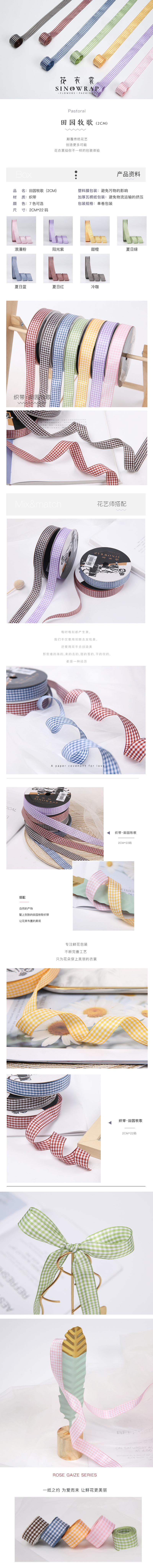 花衣裳2CM烘焙蛋糕格子布艺缎带绸带鲜花花束包装丝带礼盒彩带