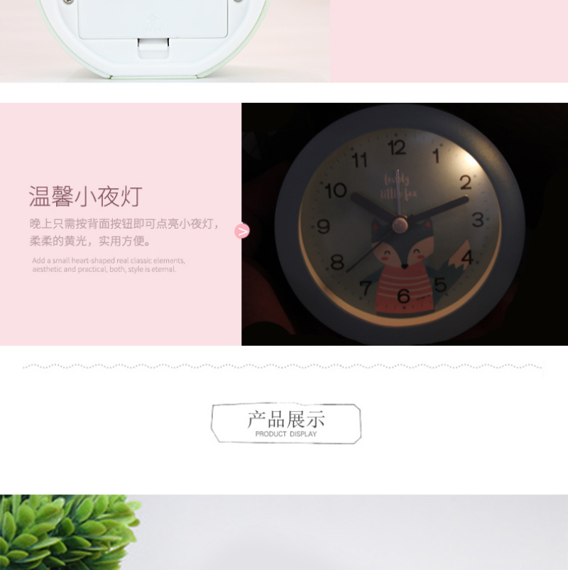 可爱卡通动物3.7寸圆形座钟 儿童学生床头静音扫秒夜灯闹钟时钟表 投诉