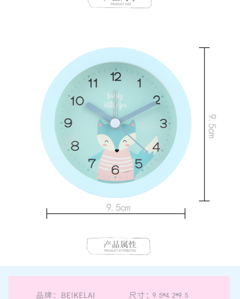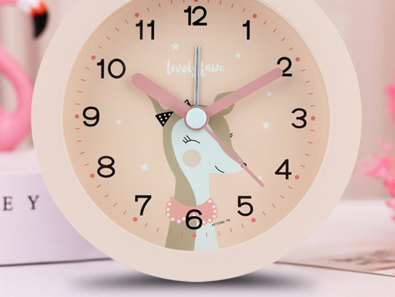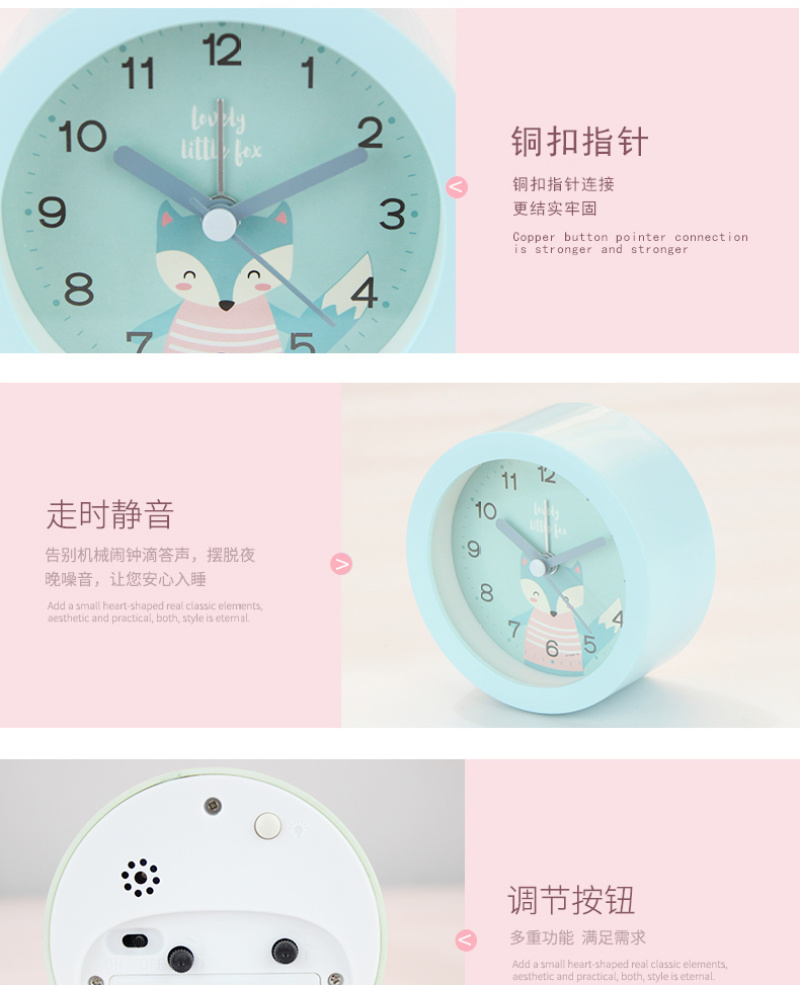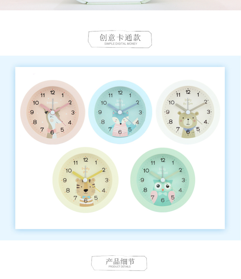 可爱卡通动物3.7寸圆形座钟 儿童学生床头静音扫秒夜灯闹钟时钟表