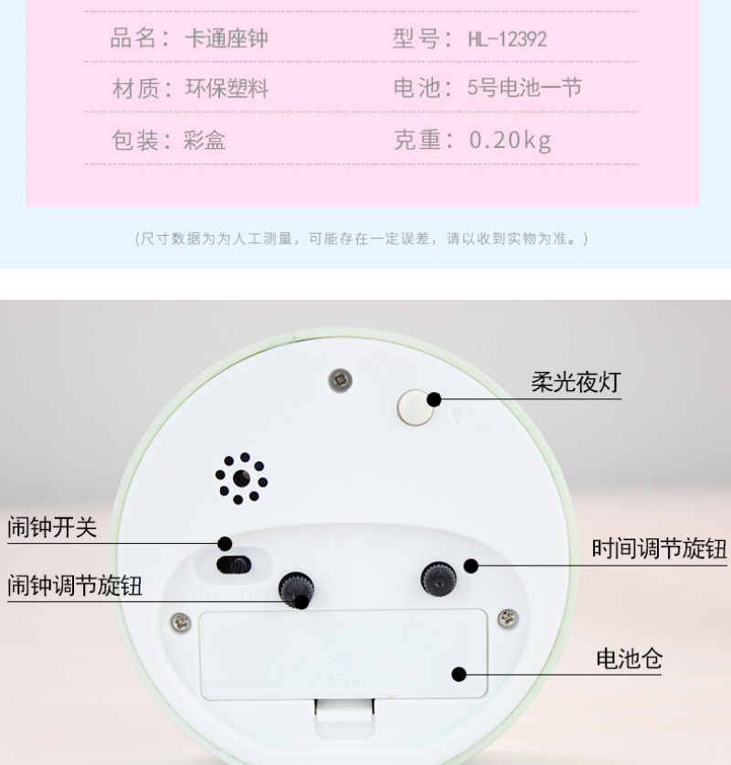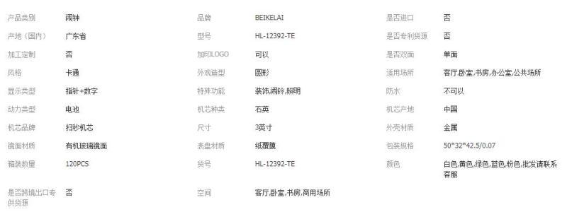 主材: 塑料 分类: 闹钟 手表种类: 其他 显示方式: 指针式 机芯类型: 石英表 Styles: 休闲 重量: 0.3 kg/个