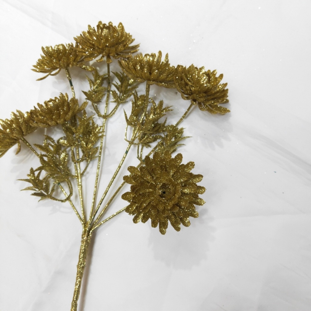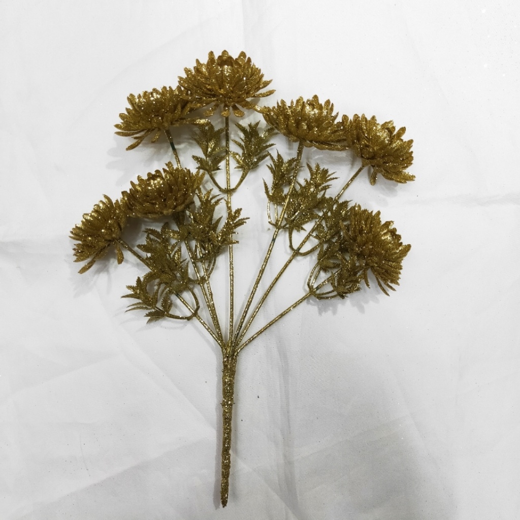 7叉圣诞插枝金粉仿真花圣诞节庆用品 English | 投诉
