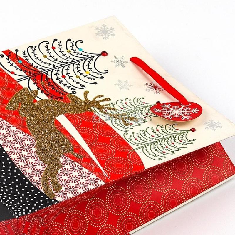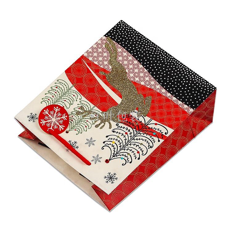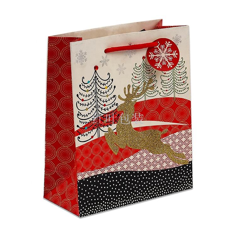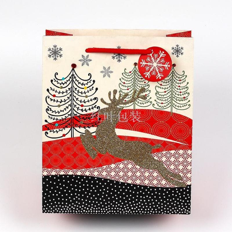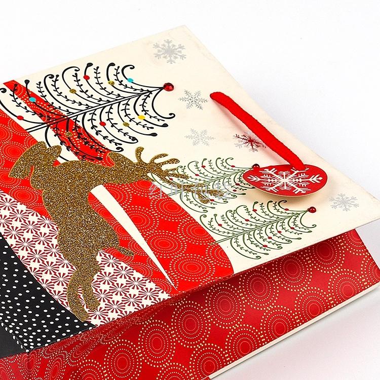 批发定制 金色麋鹿 圣诞礼品袋 带吊卡 免费设计