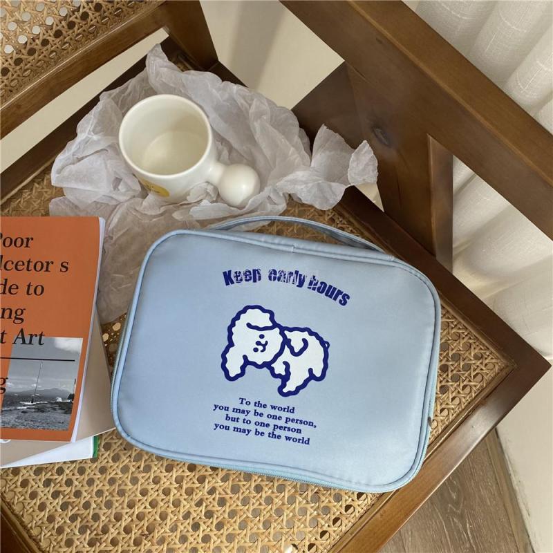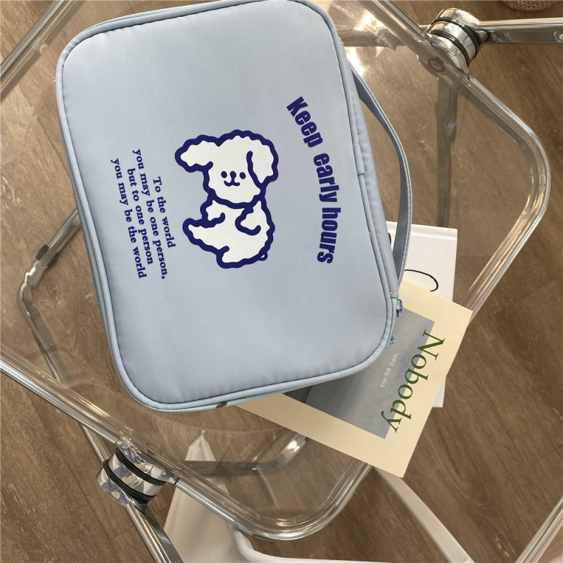 自制ins简约蓝色早睡早起洗漱包化妆包旅行便携收纳包