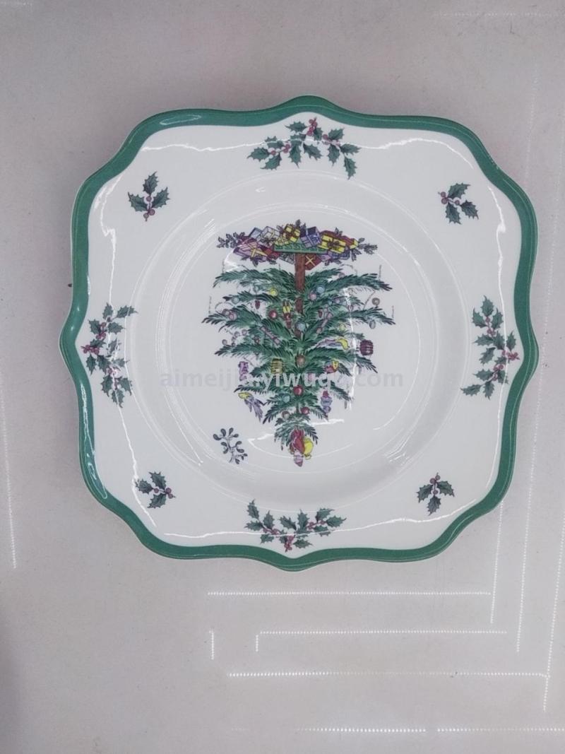 9寸荷边印花圣诞汤盘陶瓷盘
