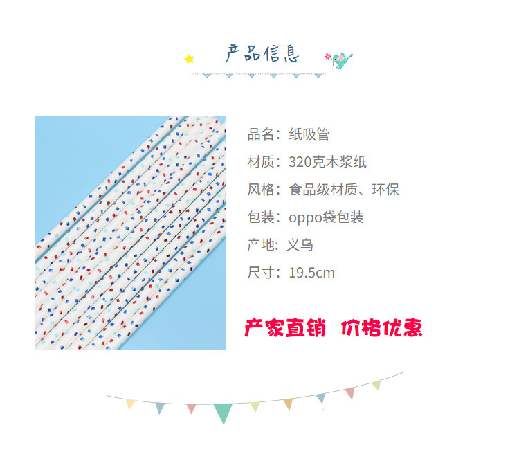 一次性环保彩色小清新派对节日甜品装饰果汁饮料奶茶创意纸质吸管 English | 投诉