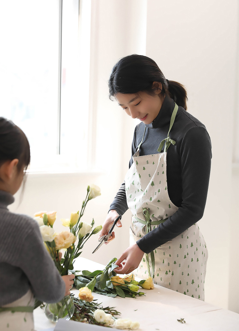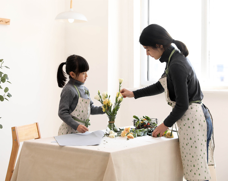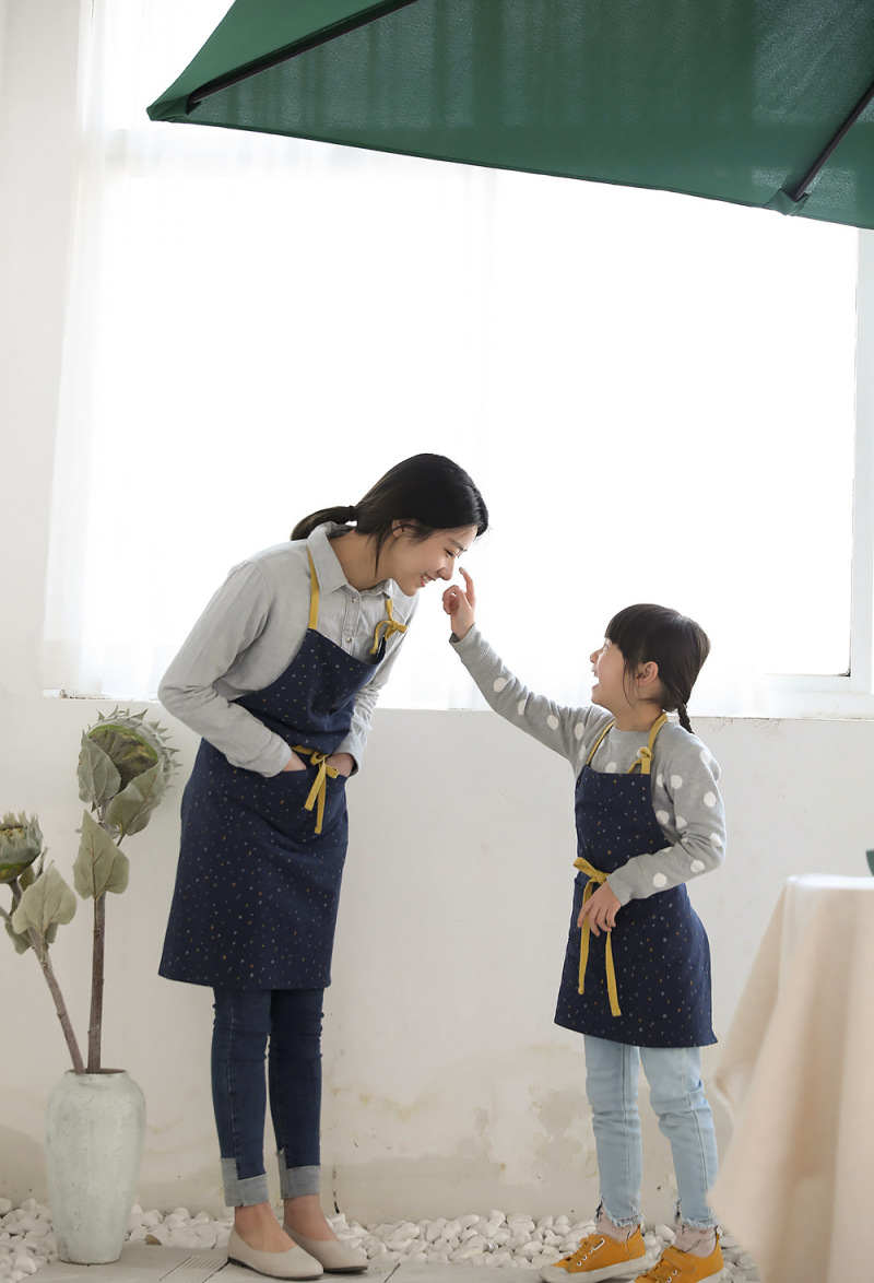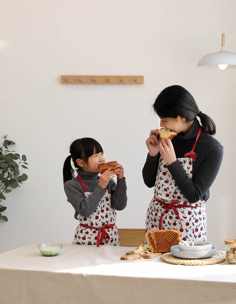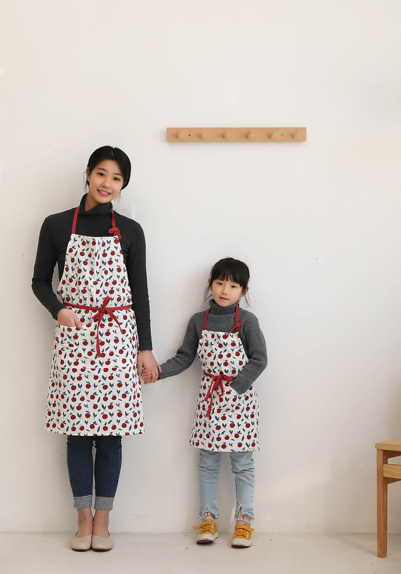 乌商良品 可爱卡通韩版全棉麻印花厨房围裙亲子儿童烘焙卡通围兜