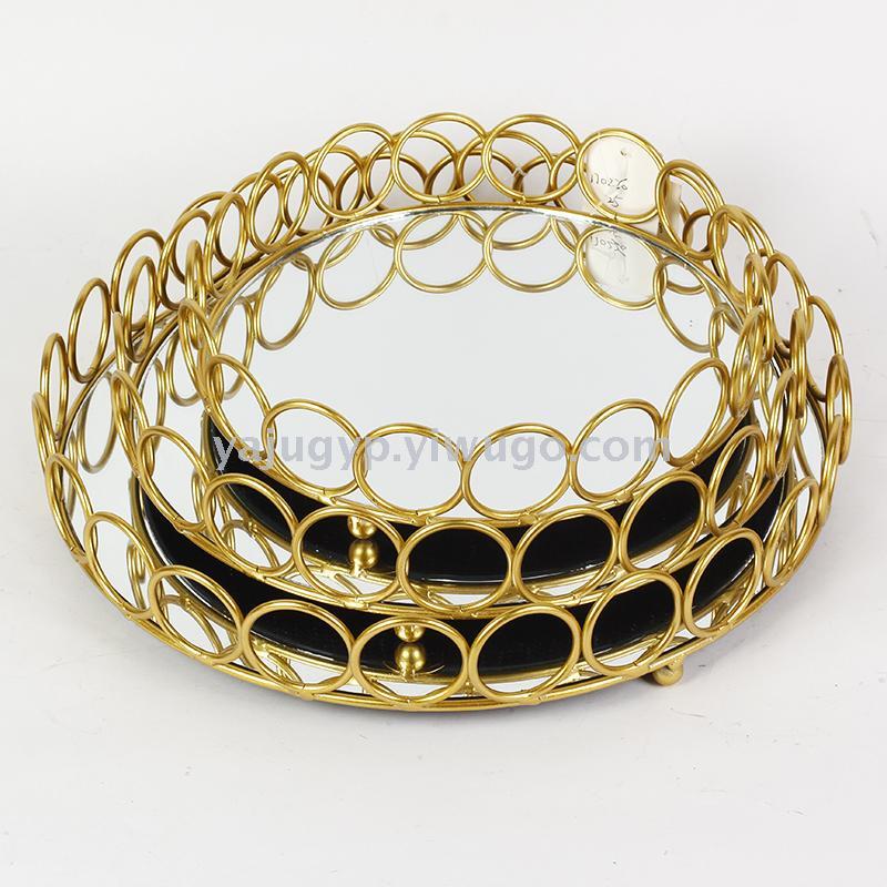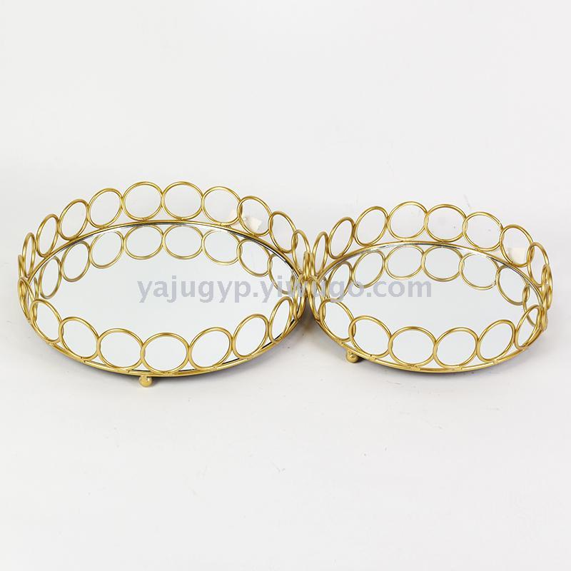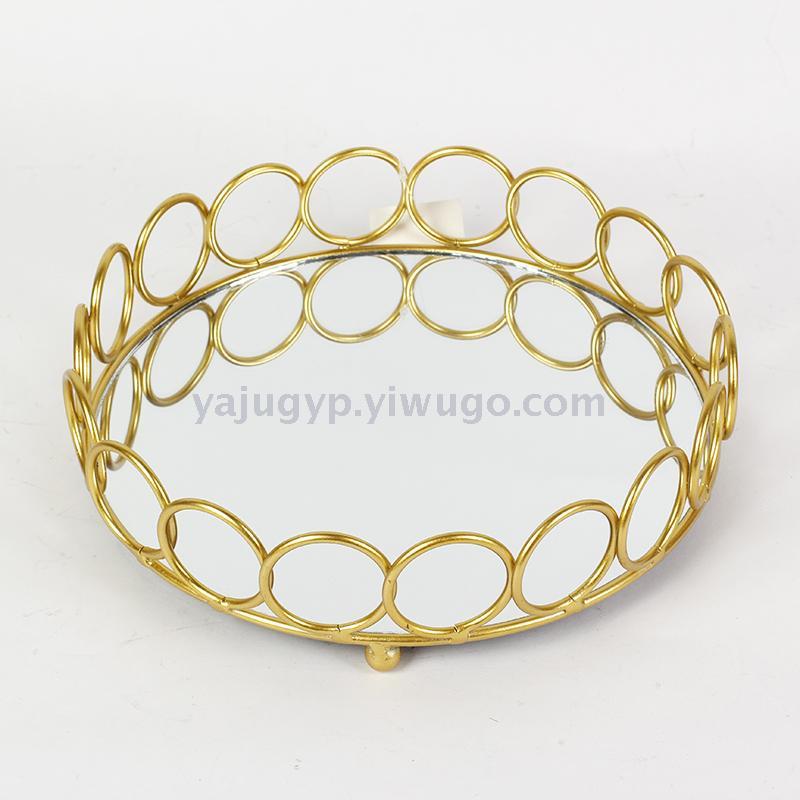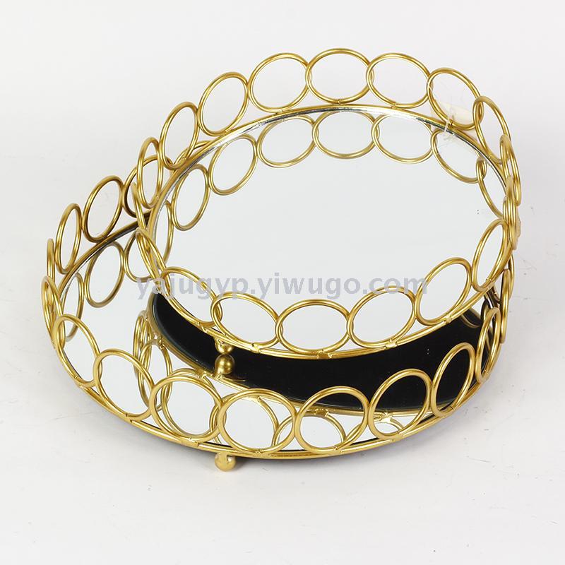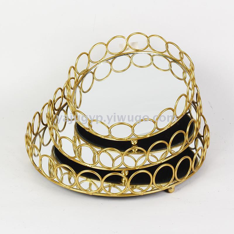 阿拉伯摆件铁艺家居用品创意玻璃蛋糕托盘电镀镜面首饰珠宝化妆品收纳