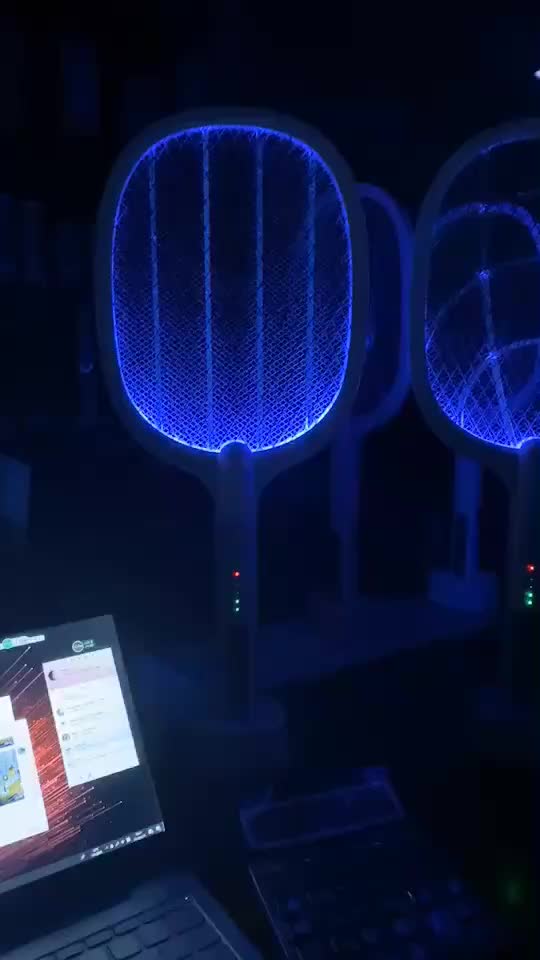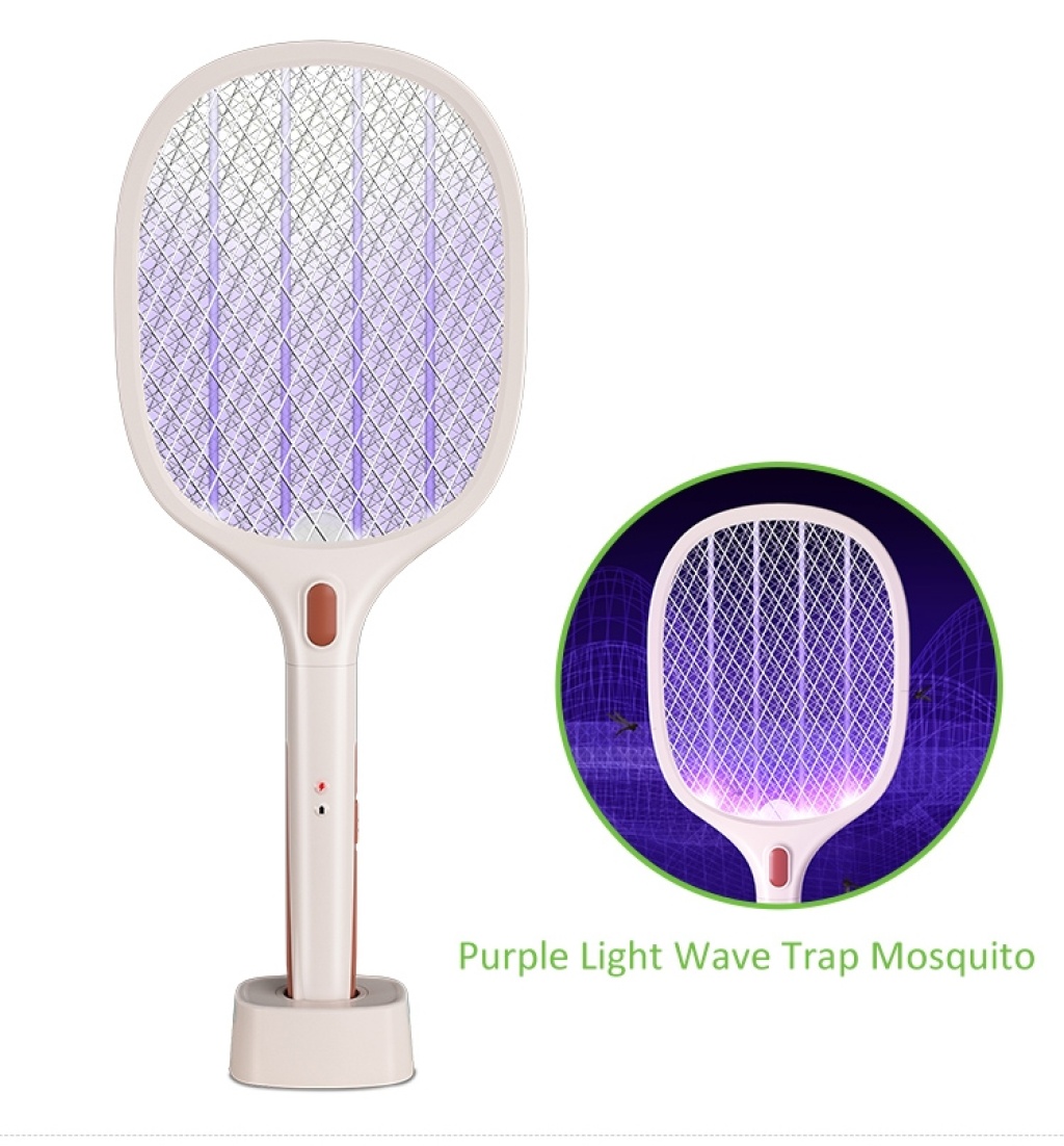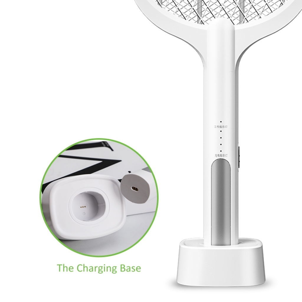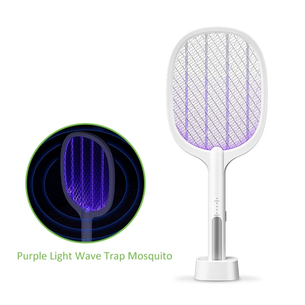 新款灭蚊拍灭蚊灯合一智能多功能白色USB充电带支架家居户外野营