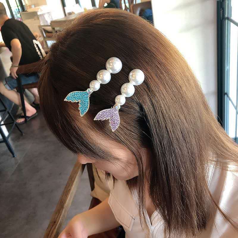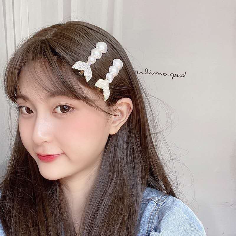 韩国人鱼公主发夹超仙甜美气质珍珠水钻发卡ins网红少女刘海夹夹
