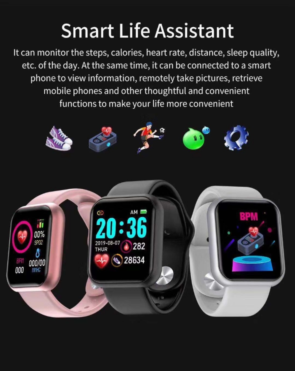 Y68智能手环心率血压运动蓝牙手环电子产品跨境新款D20智能手环