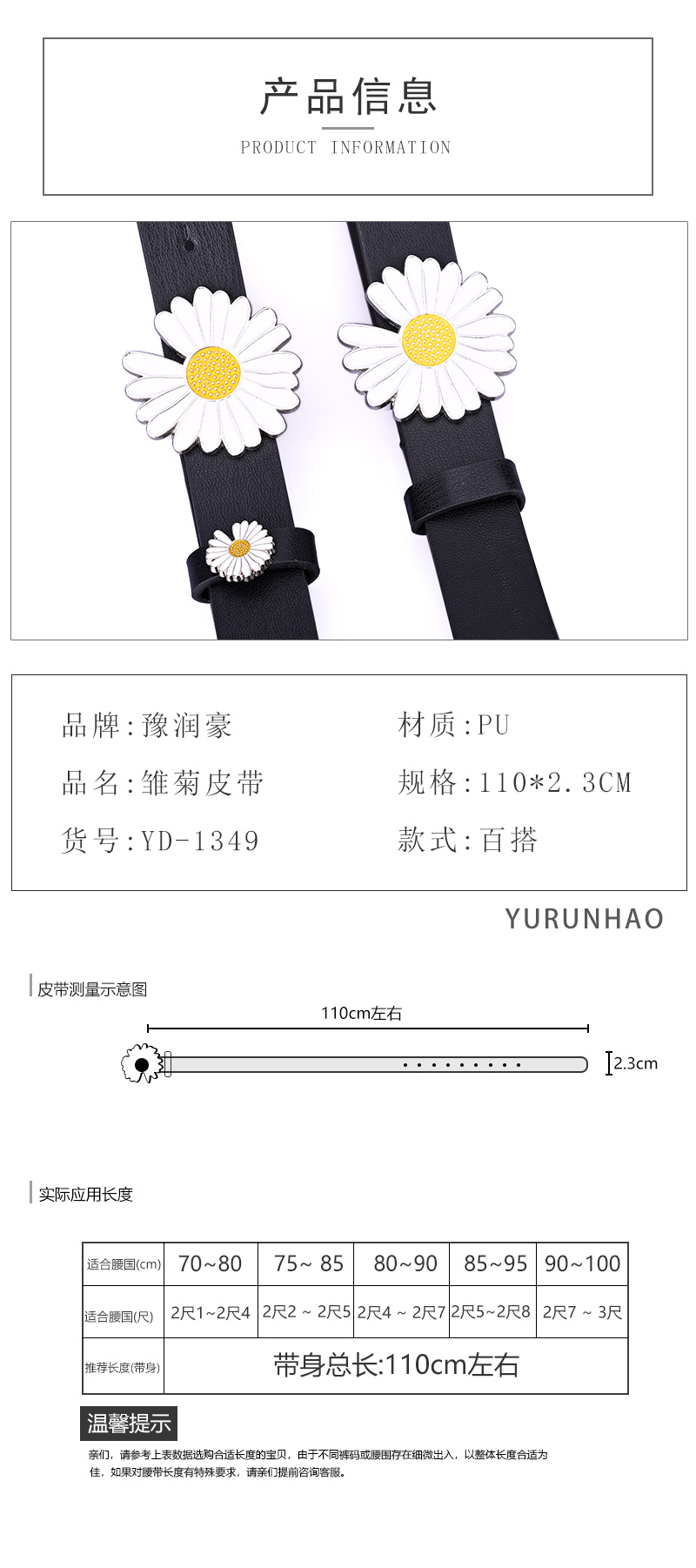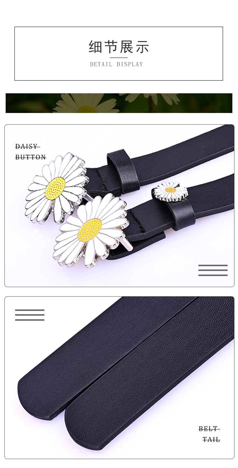 润豪网红小雏菊花朵装饰腰带女学生时尚连衣裙子牛仔裤女士细皮带 English | 投诉