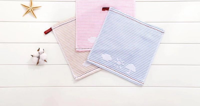 布艺条纹提花儿童毛巾方巾小清新云朵太阳