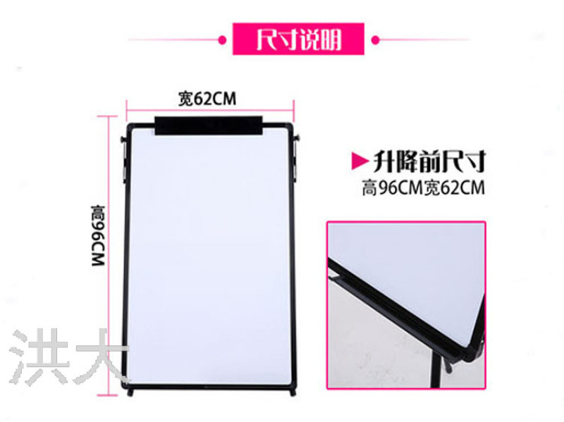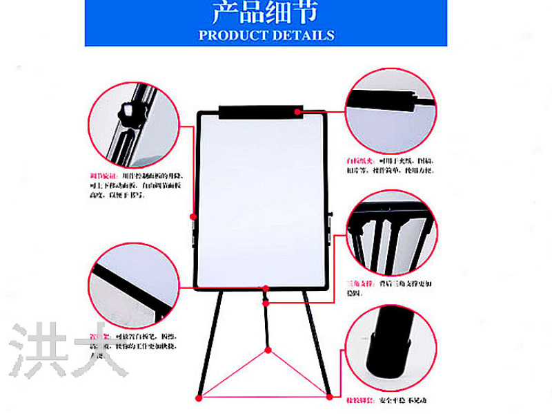 带三角支架造型,放置更稳固,适合多种场合,用途广泛,别具匠心白板上附带夹纸功能,可方便放置文件!