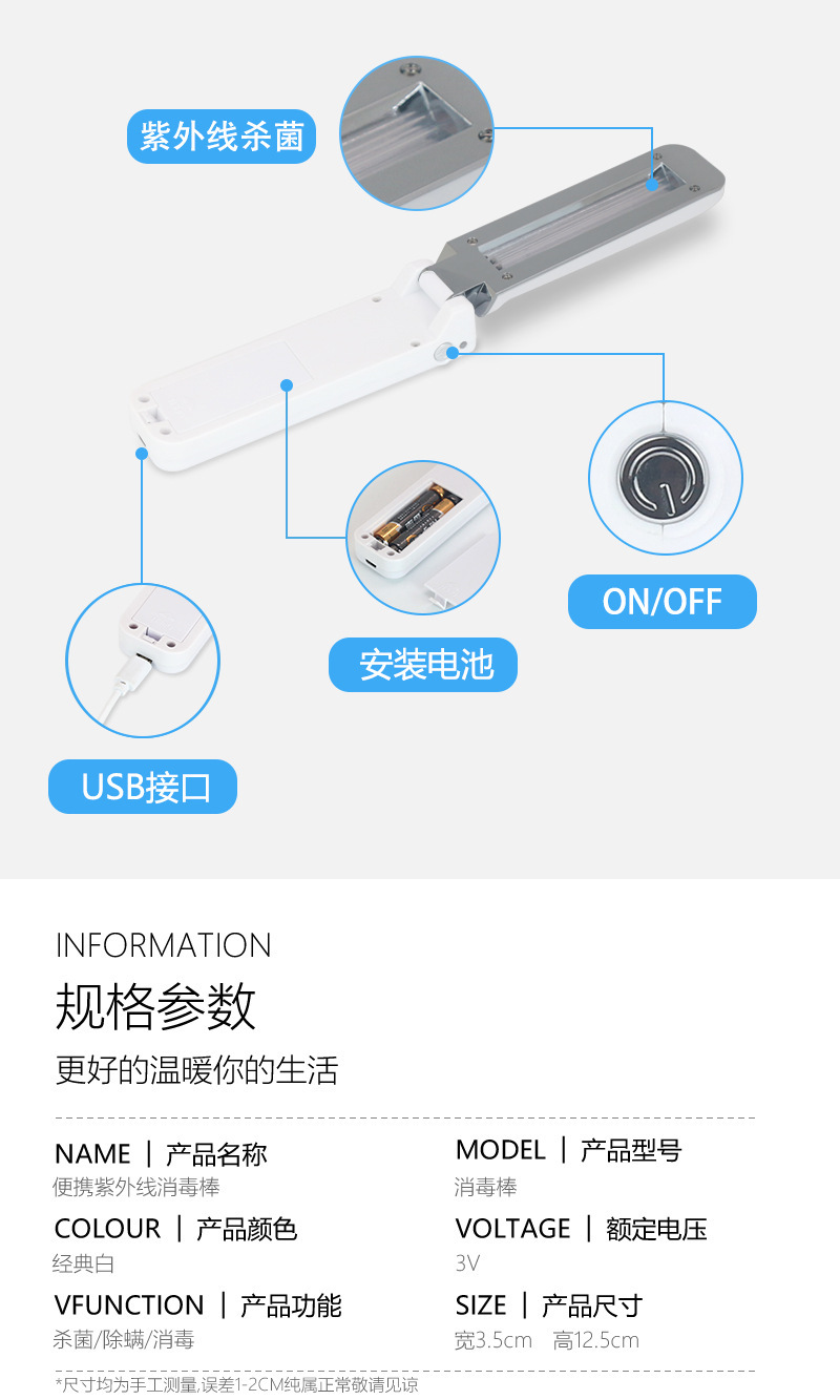 手持uv紫外线消毒棒便携式杀菌灯usb手提杀菌智能感应消毒器 投诉