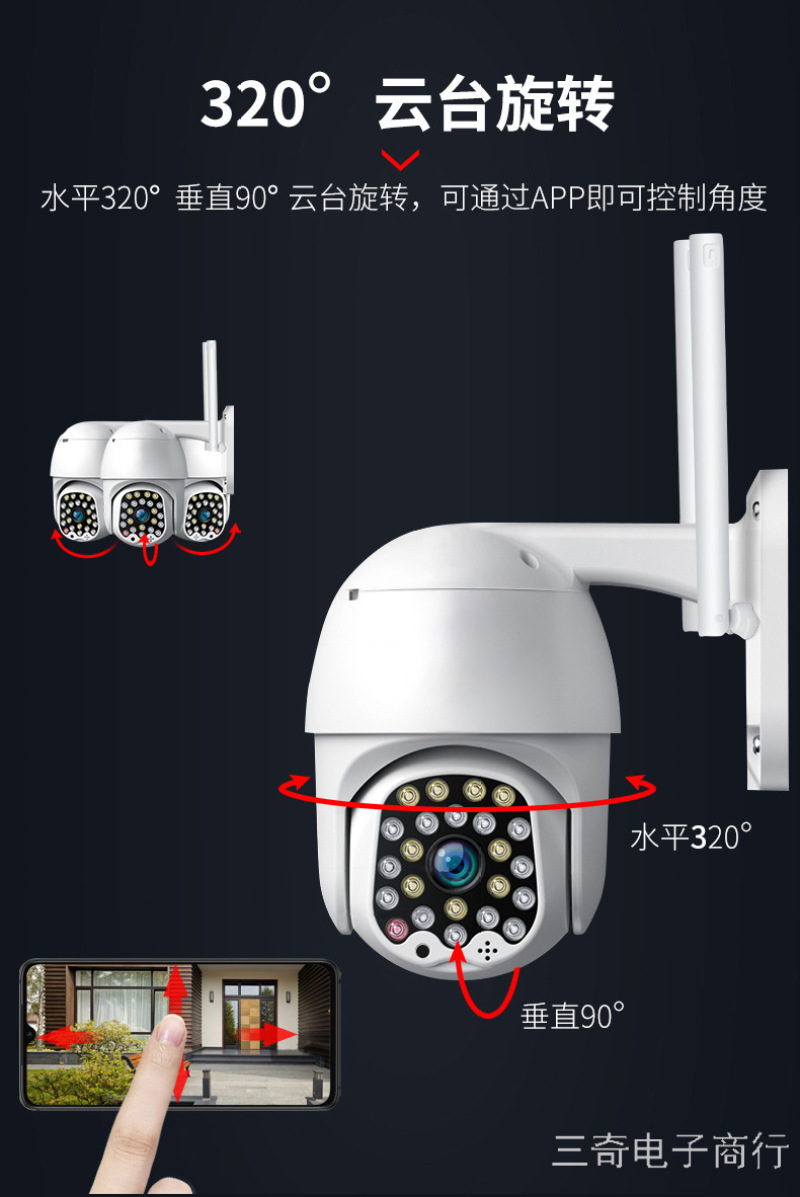 家用户外wifi手机无线远程网络球机高清防水云台监控摄像头