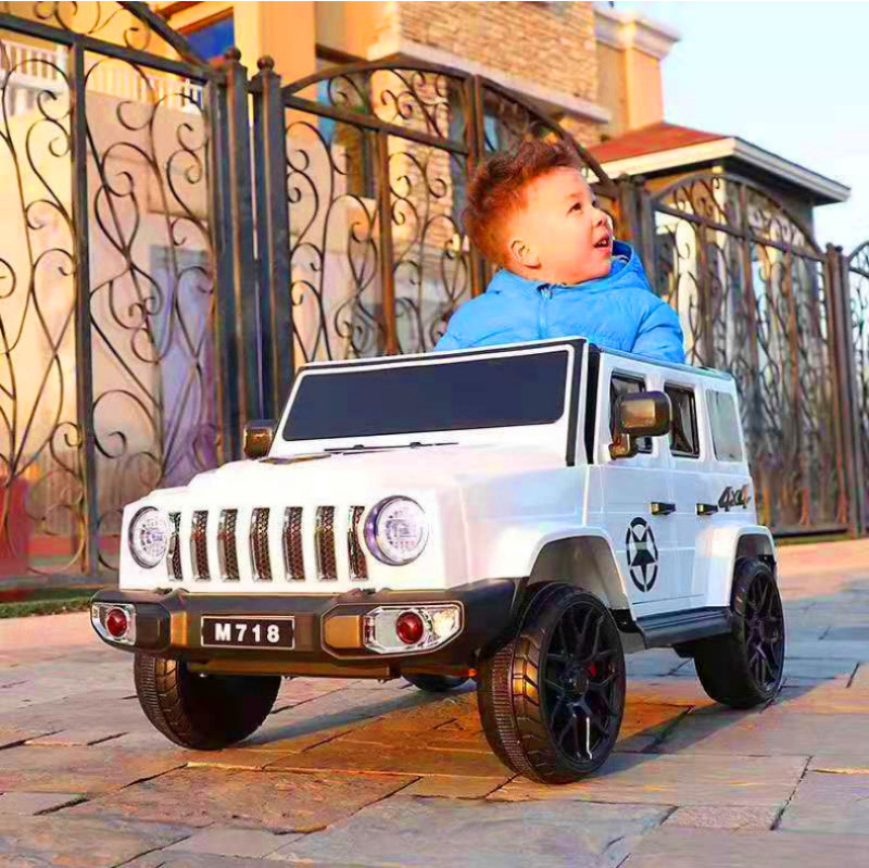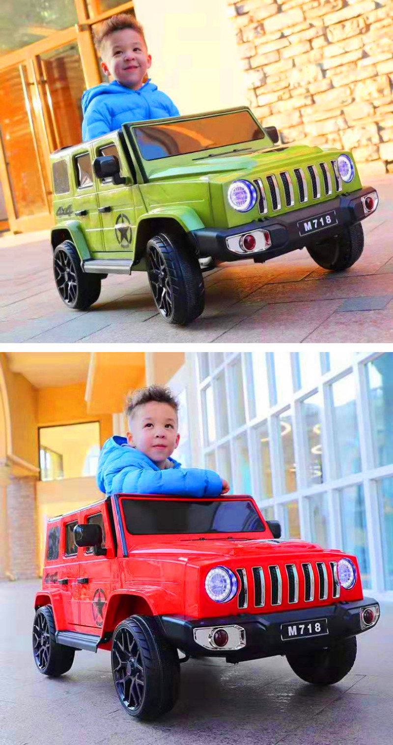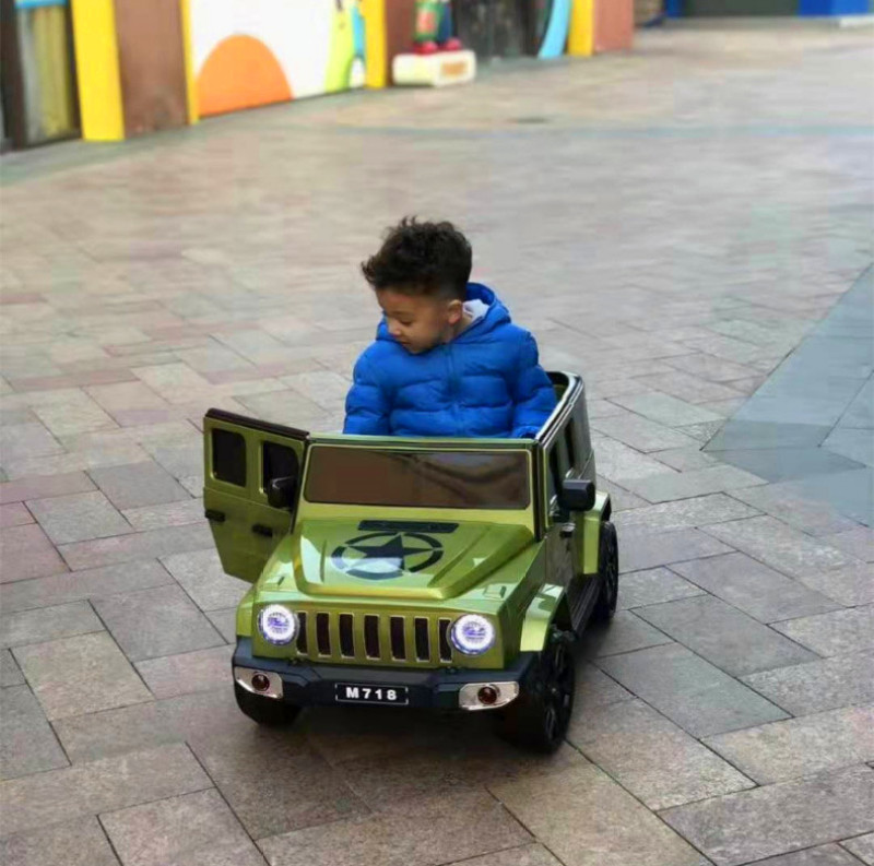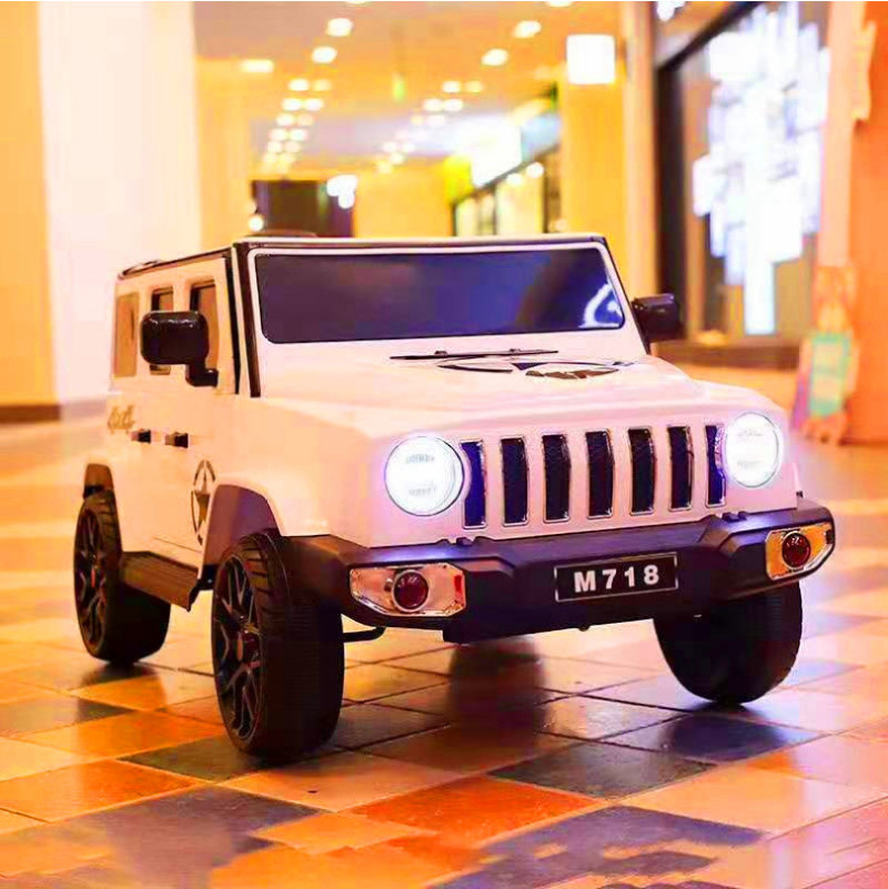 配置:多功能音乐播放器,USB插头/TF卡插头/MP3插头/前进/后退/摇摆/音量加减/灯光开关等功能,智能缓启动,对一2.4G蓝牙遥控,前后仿真减震,二点式安全带,炫彩灯光,动感音乐, 双驱动380电机,摇摆电机,6V4AH双电瓶。