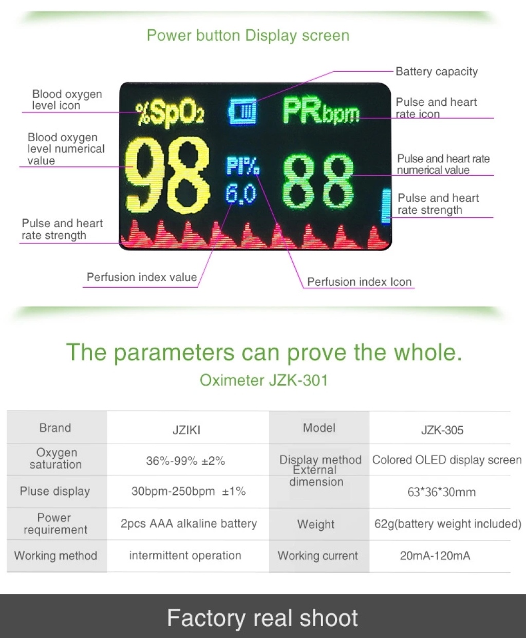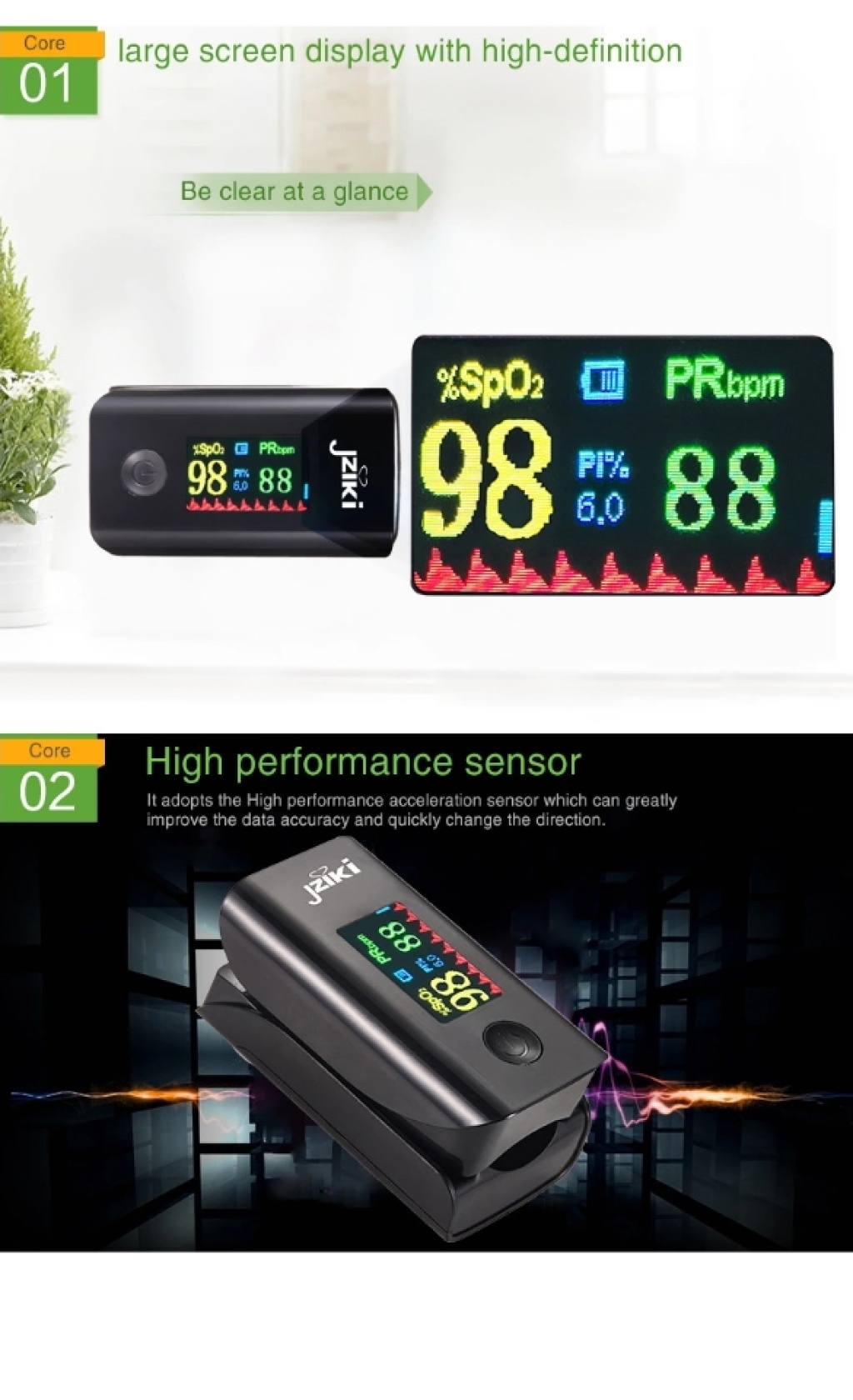 Jziki全自动OLED精准指甲式血氧仪 新品上市特价血氧仪外贸爆款