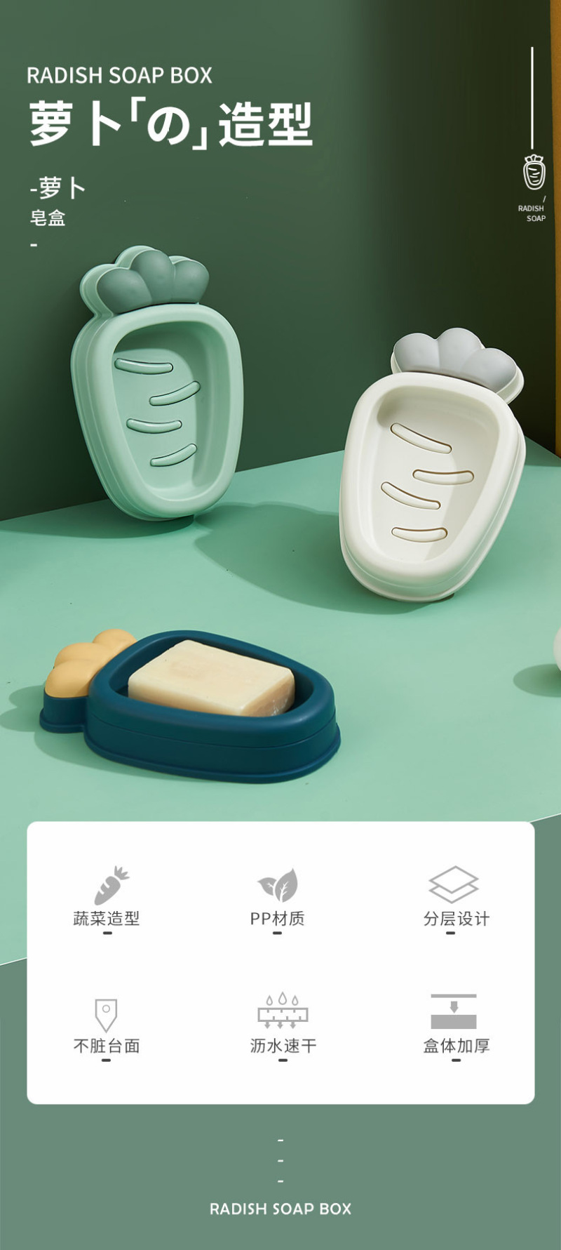 卡通萝卜皂盒可爱双层沥水肥皂盒家用学生皂托浴室肥皂架香皂盒