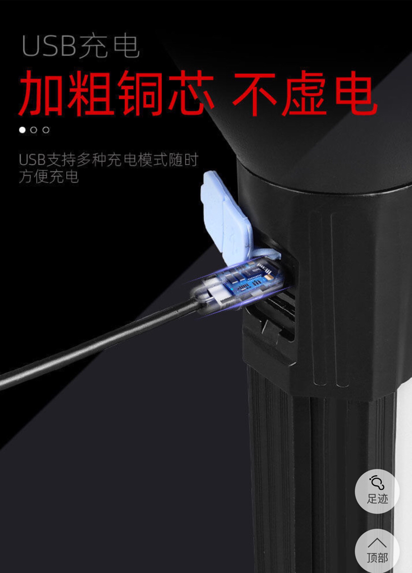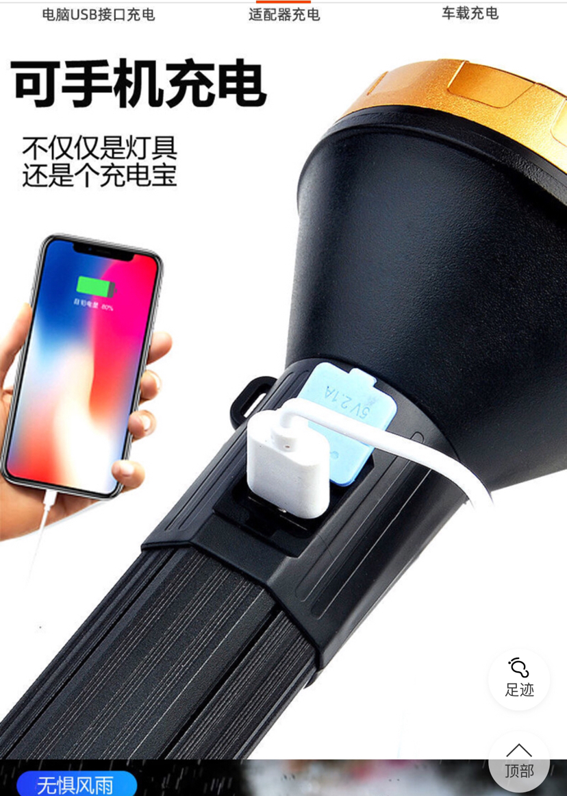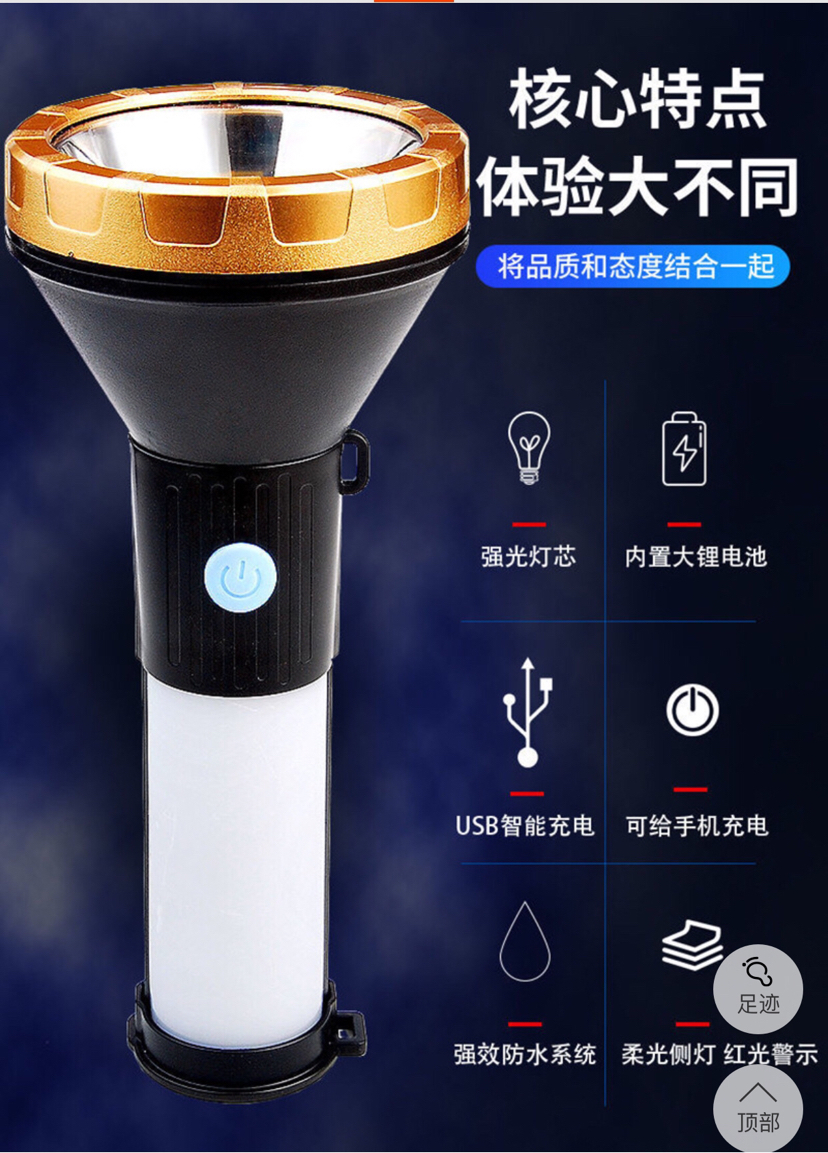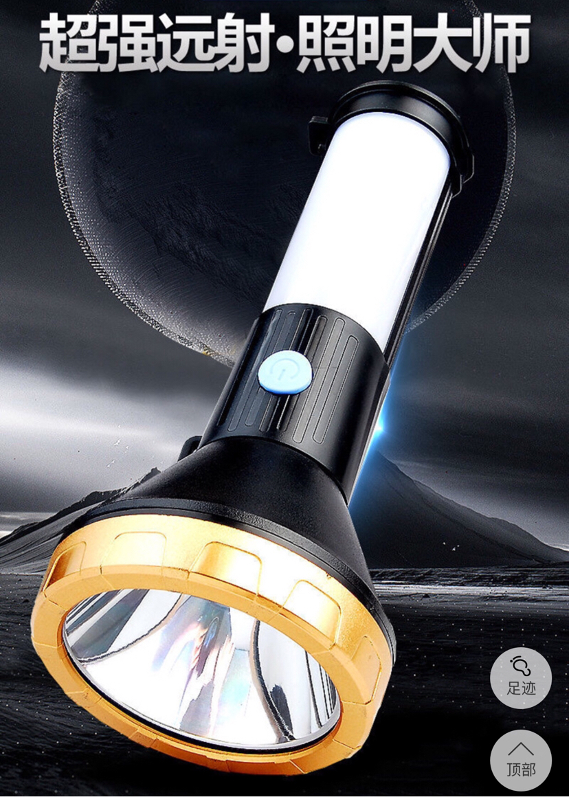 多功能手电筒可充电式户外强光远射便携式COB手电筒带警示灯 投诉
