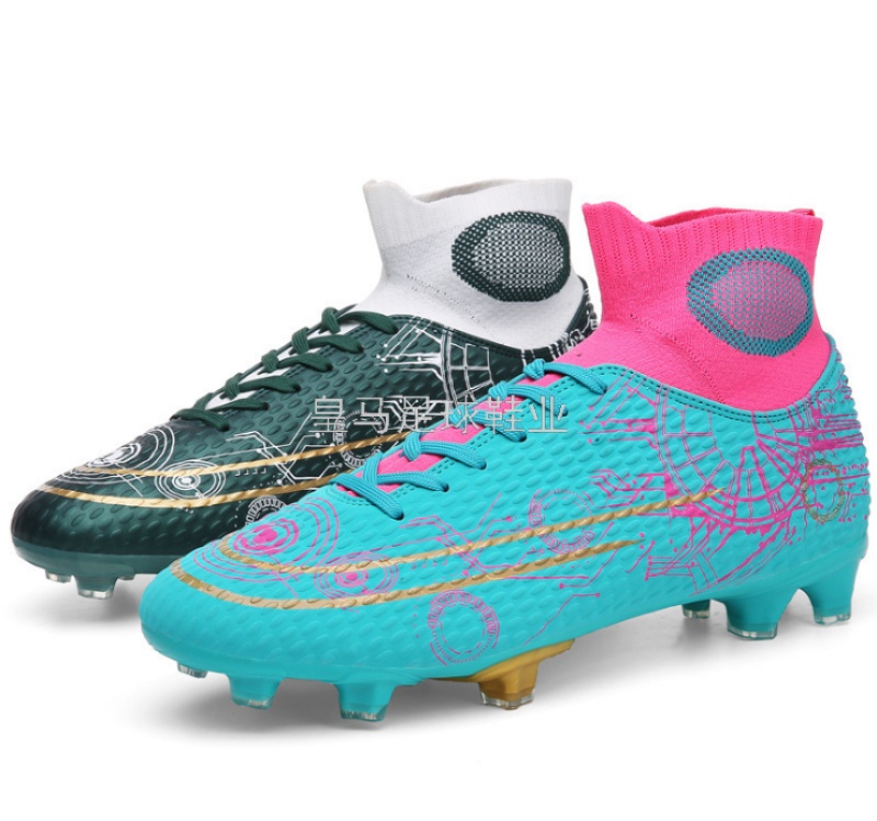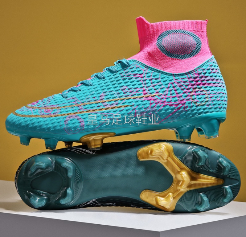 新款女足球鞋高帮鸳鸯AG长钉成人男女比赛儿童青少年人造草地训练运动