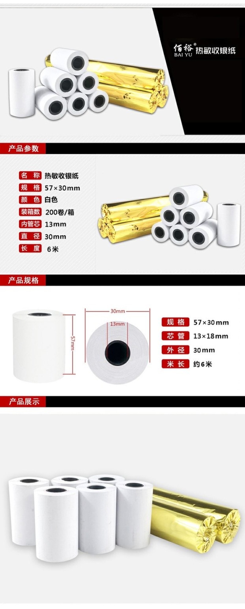 新华升热敏收银纸57x40小票纸57mm打印纸外卖收据纸超市小票纸 English | 投诉