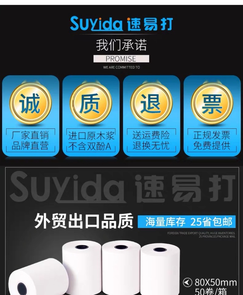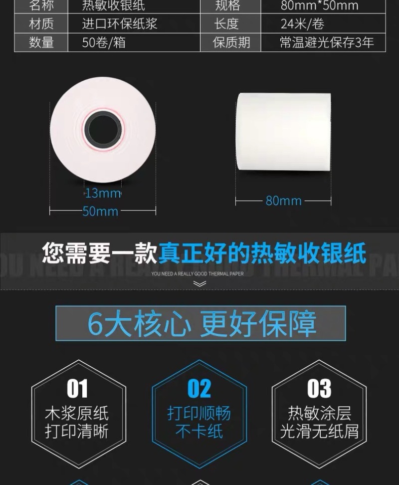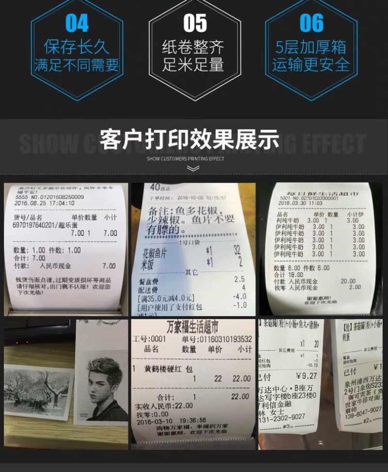 新华升收银纸80x70热敏纸80mm收款机打印纸外卖收据纸超市小票纸 English | 投诉