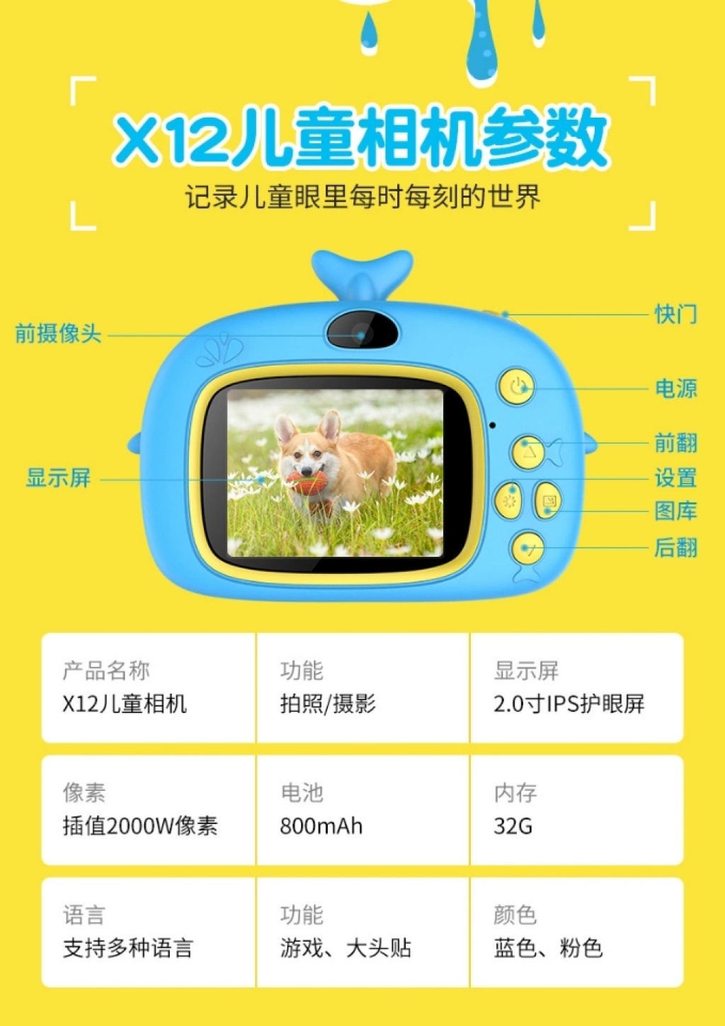 产品功能:照相, 录像,玩游戏,玩具