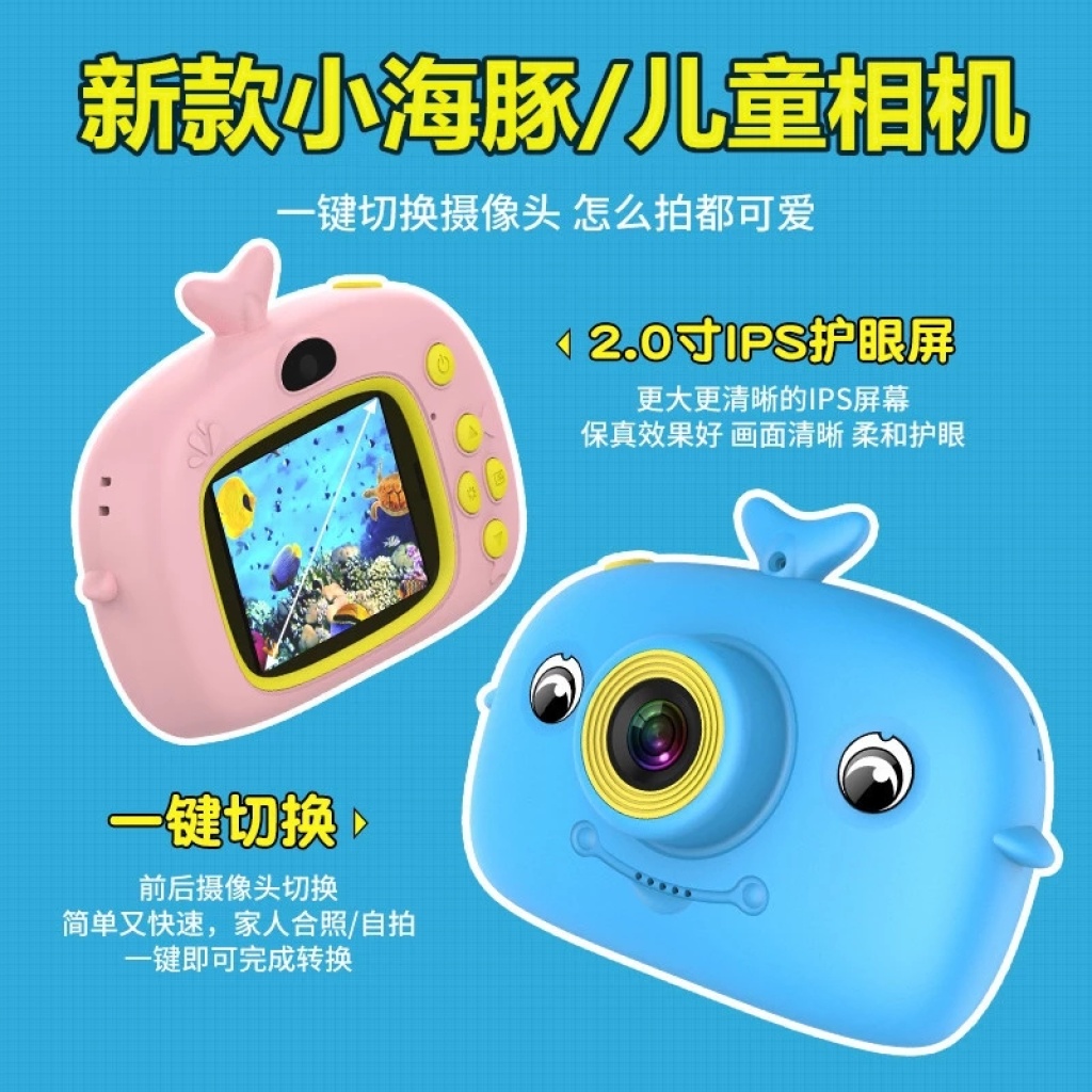 新款儿童相机小海豚高清拍照便携单反摄像机卡通玩具数码照相机