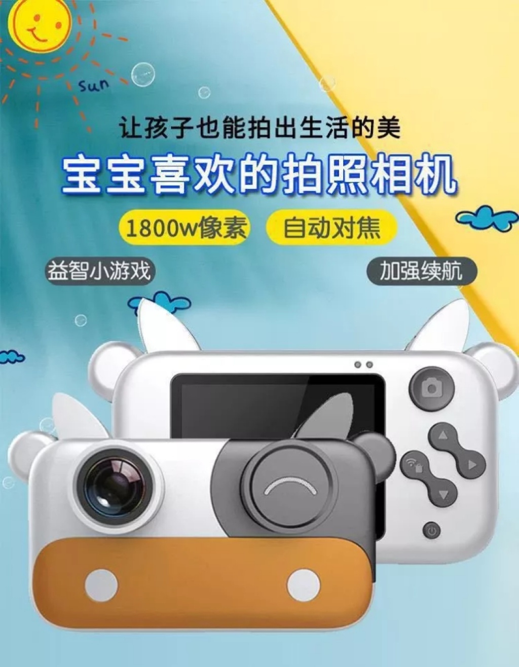 奶牛款儿童相机 儿童数码相机 迷你小单反 卡通玩具照相机ET019 投诉