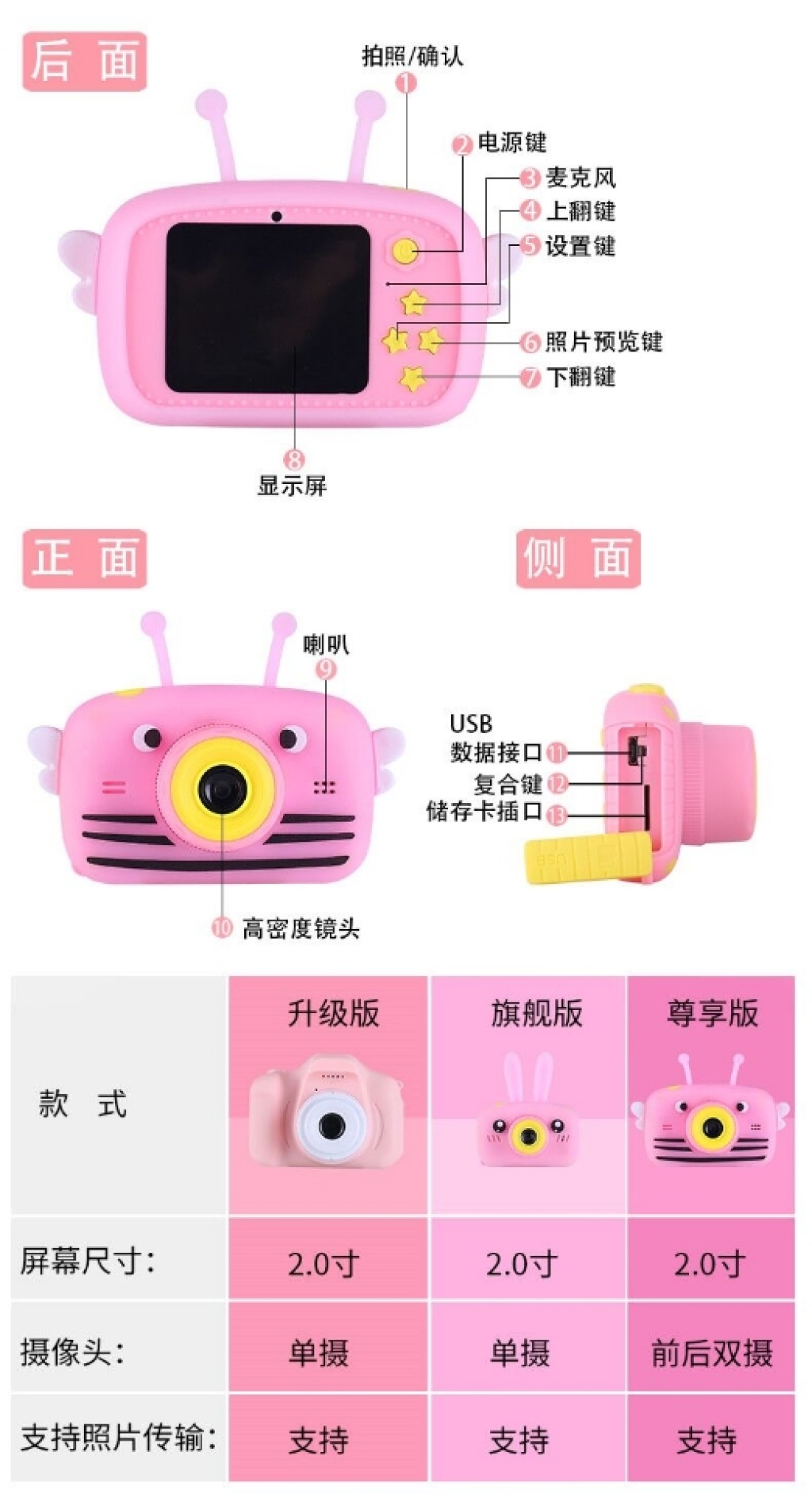 儿童数码照相机玩具可拍照小型高清单反宝宝迷你卡通生日礼物女孩 投诉