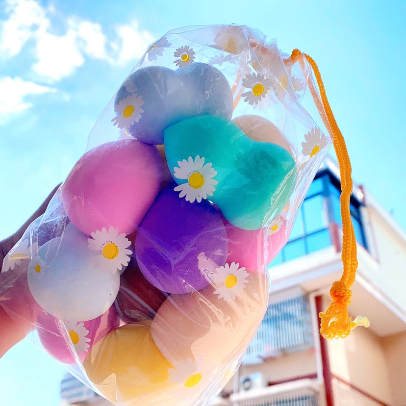 8个的是小雏菊防水抽绳袋装。 买多需要单个小袋子的 咨询客服可以送小袋子单个装。 需要送粉扑晾晒架的也可以咨询客服送哦