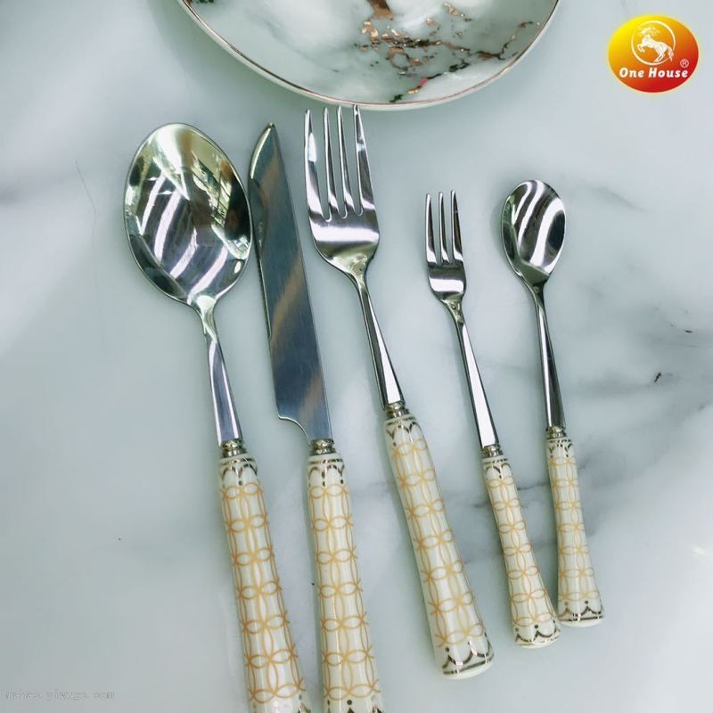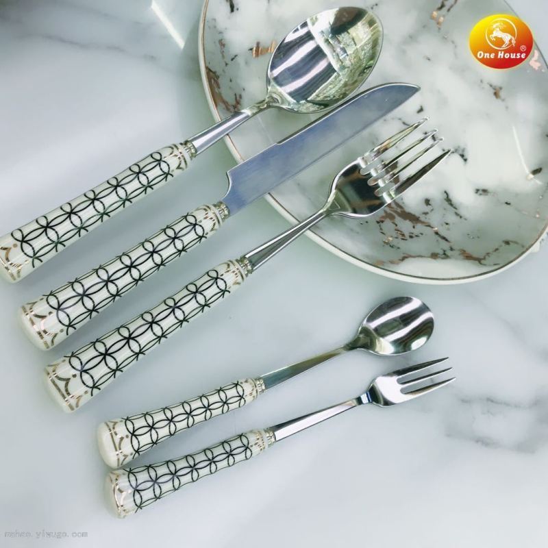 晶致厂家直销陶瓷柄不锈钢餐具创意色釉刀叉勺套装酒店西餐餐具 投诉