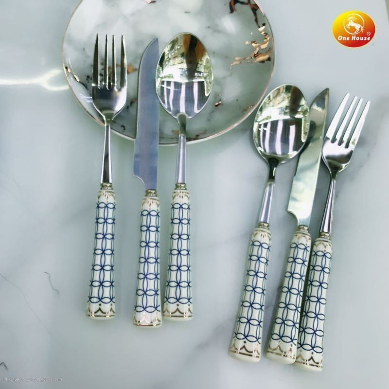 晶致厂家直销陶瓷柄不锈钢餐具创意色釉刀叉勺套装酒店西餐餐具