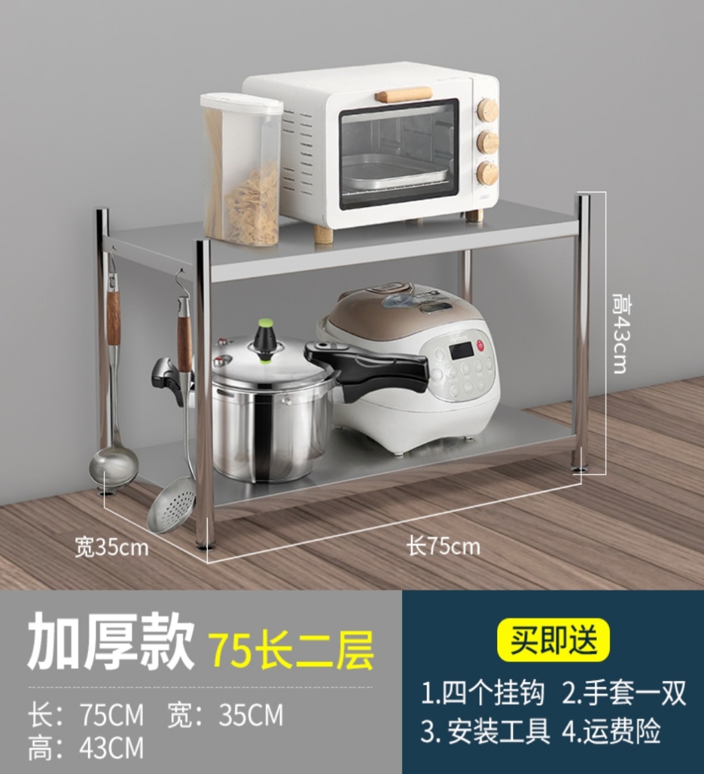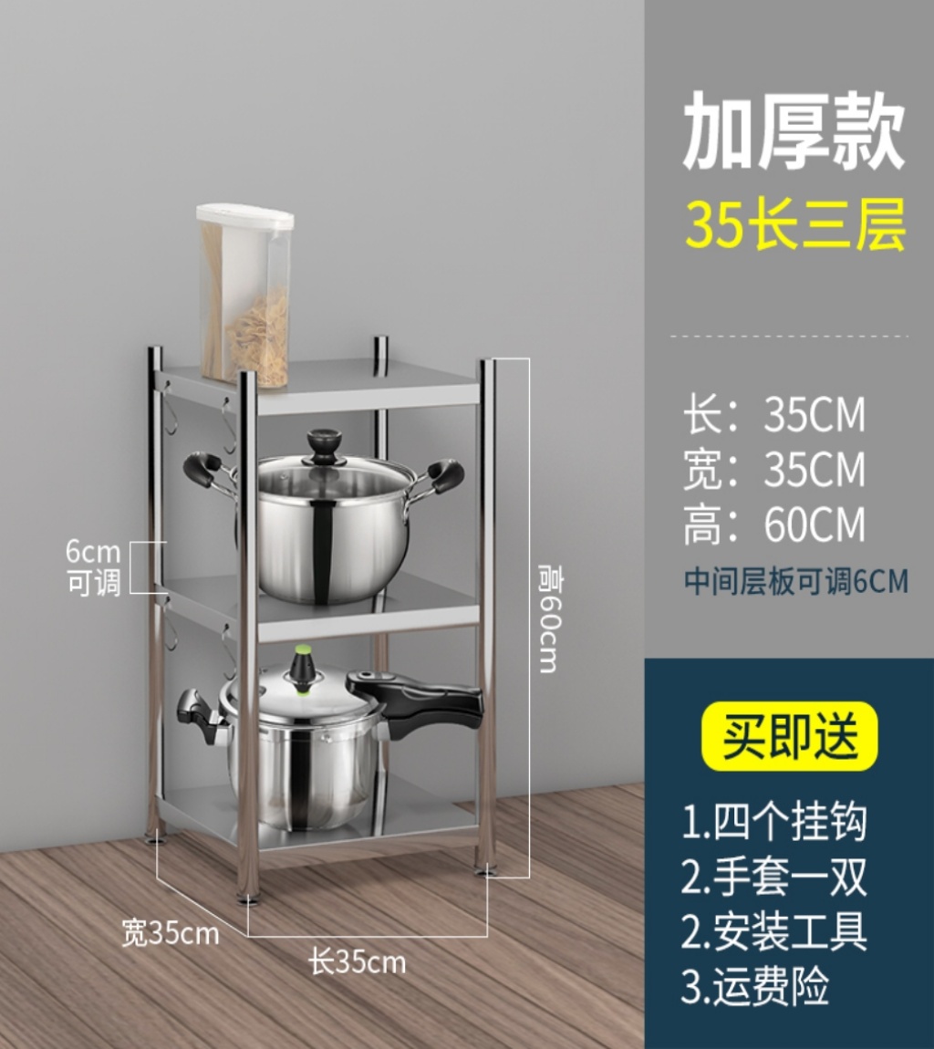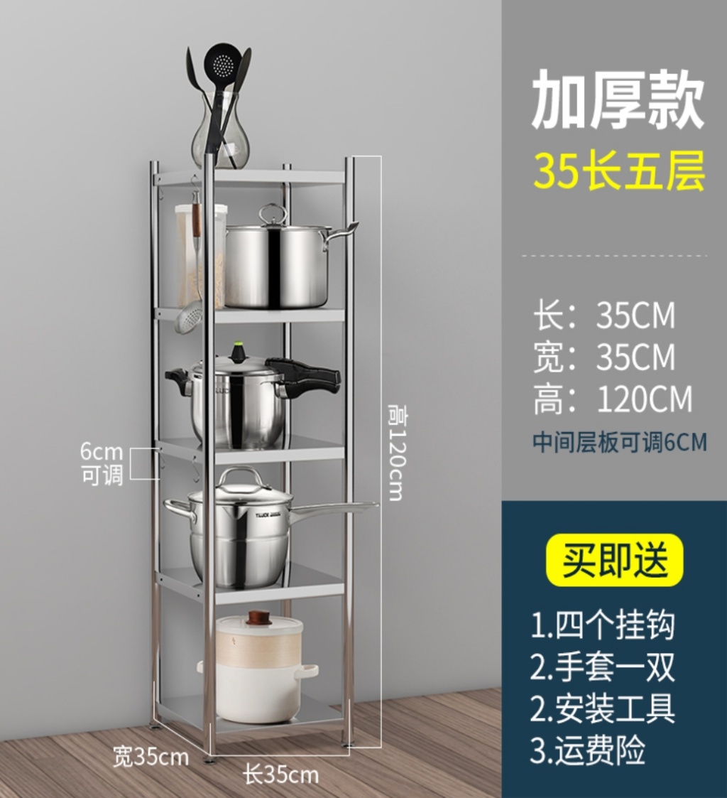 加厚厨房不锈钢置物架子储物用品夹缝微波炉厨具锅落地多层收纳架