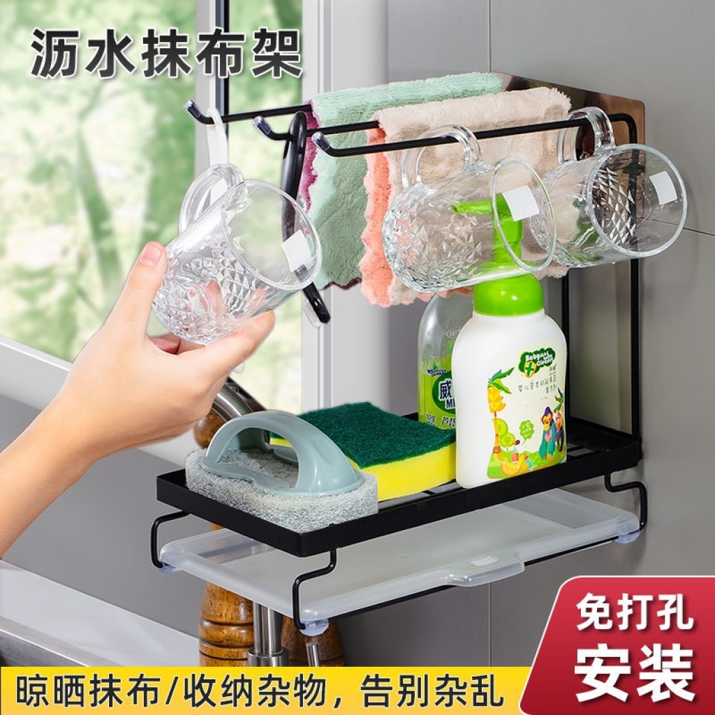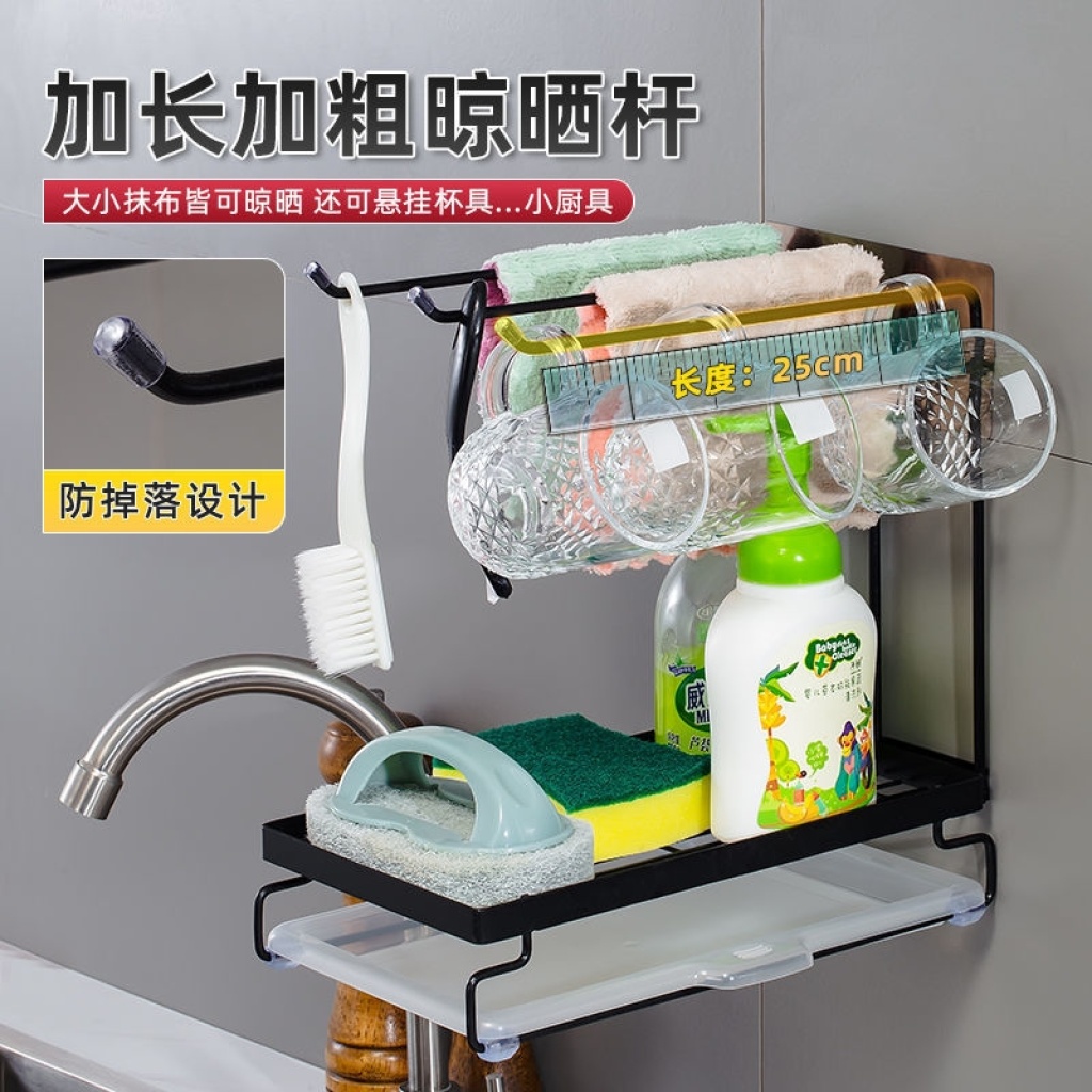 厨房抹布架洗碗百洁布双层沥水架水槽置物架台面海绵钢丝球收纳架 投诉