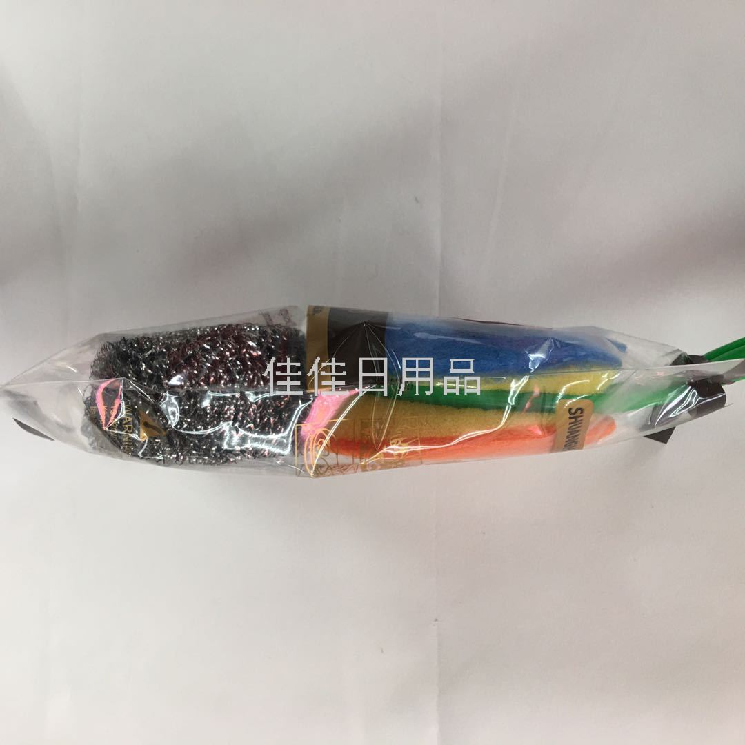 217厨房清洁套装海绵不锈钢清洁球塑料手柄三合一