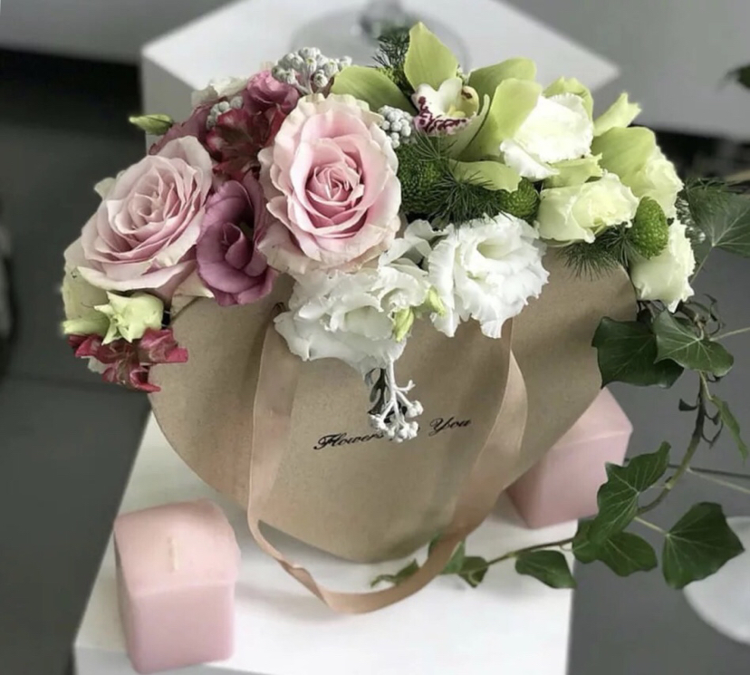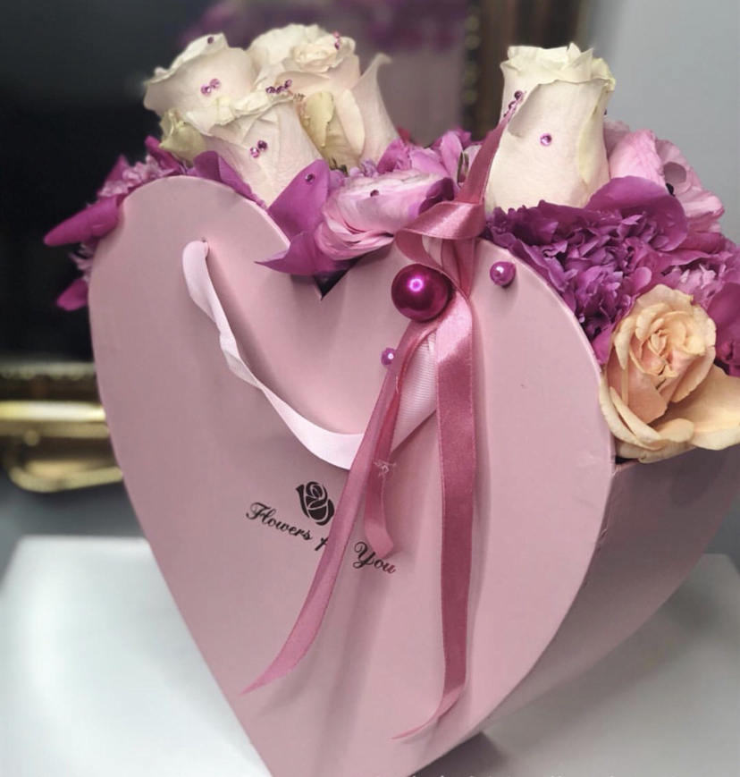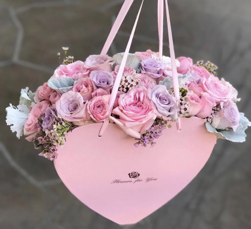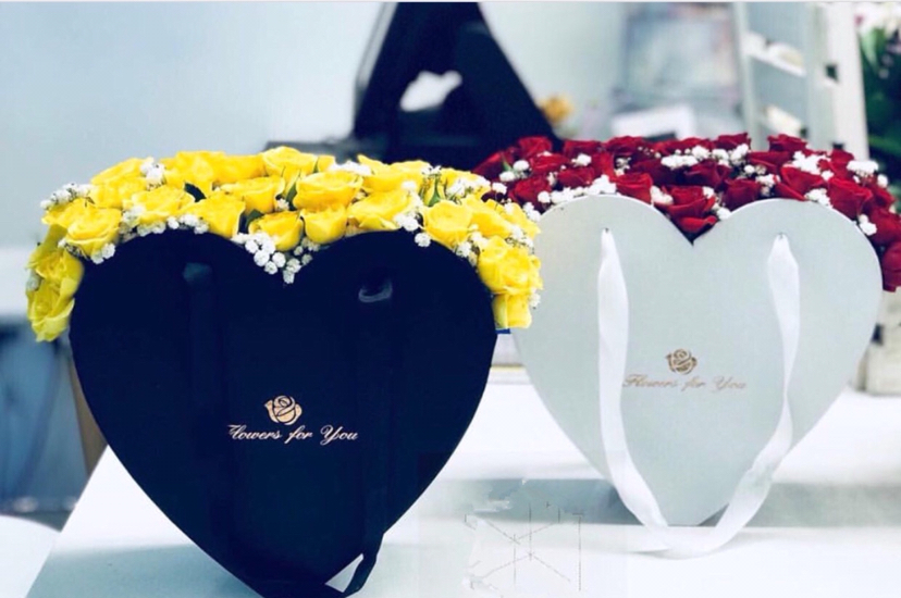 手提心形鲜花礼盒二件套