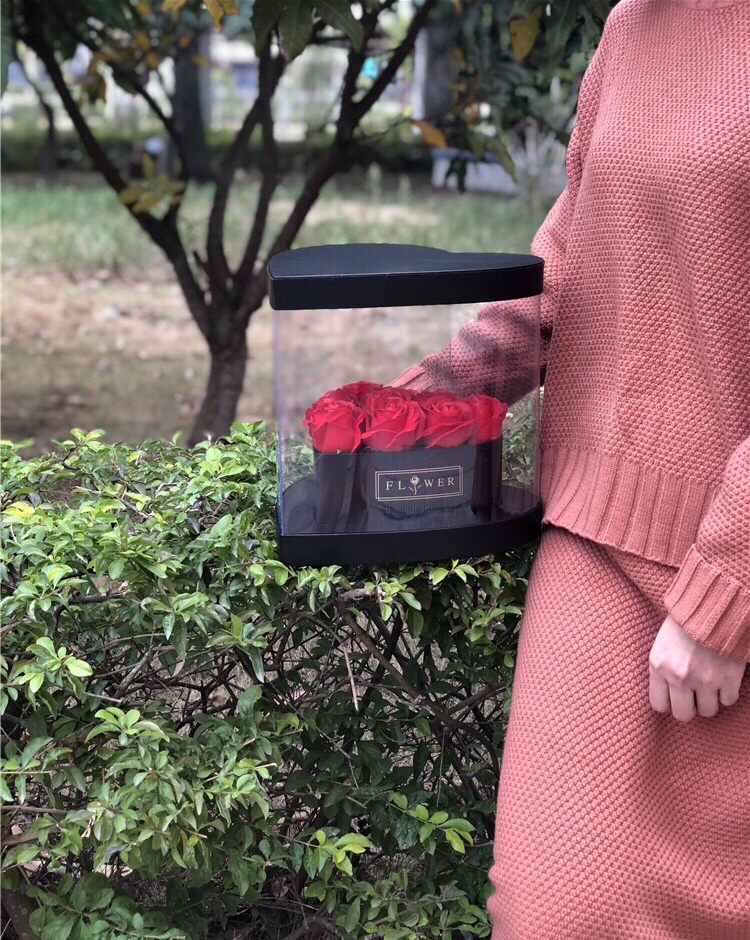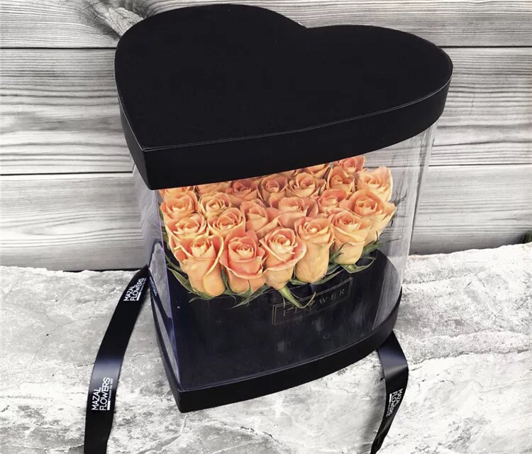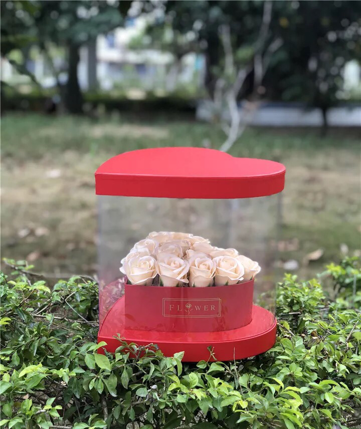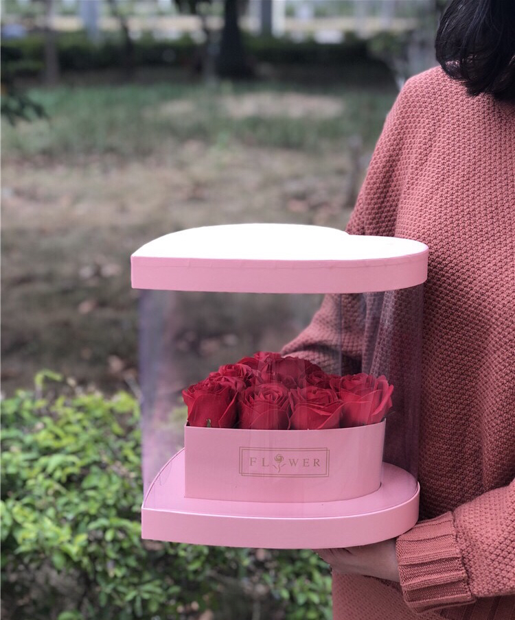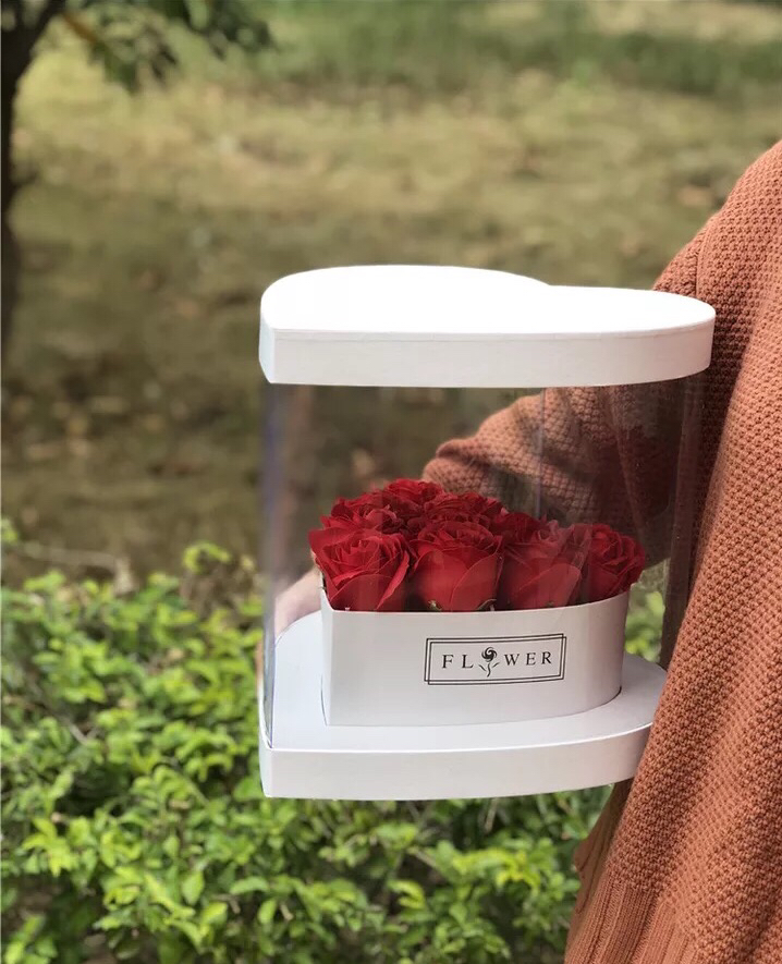 PVC开窗心形全景折叠鲜花盒