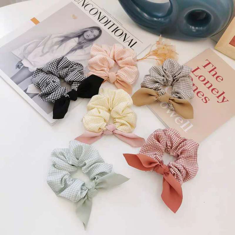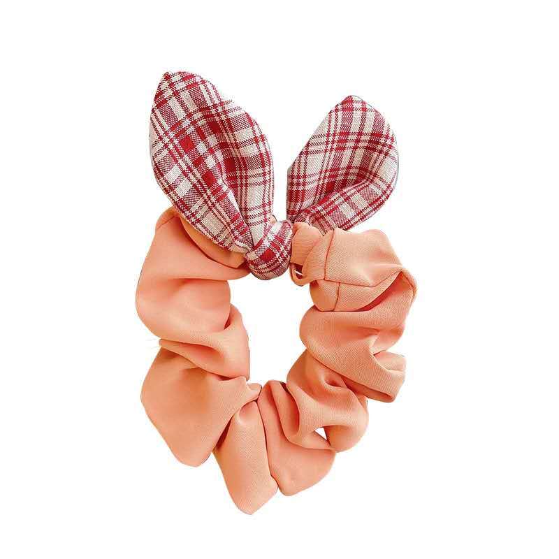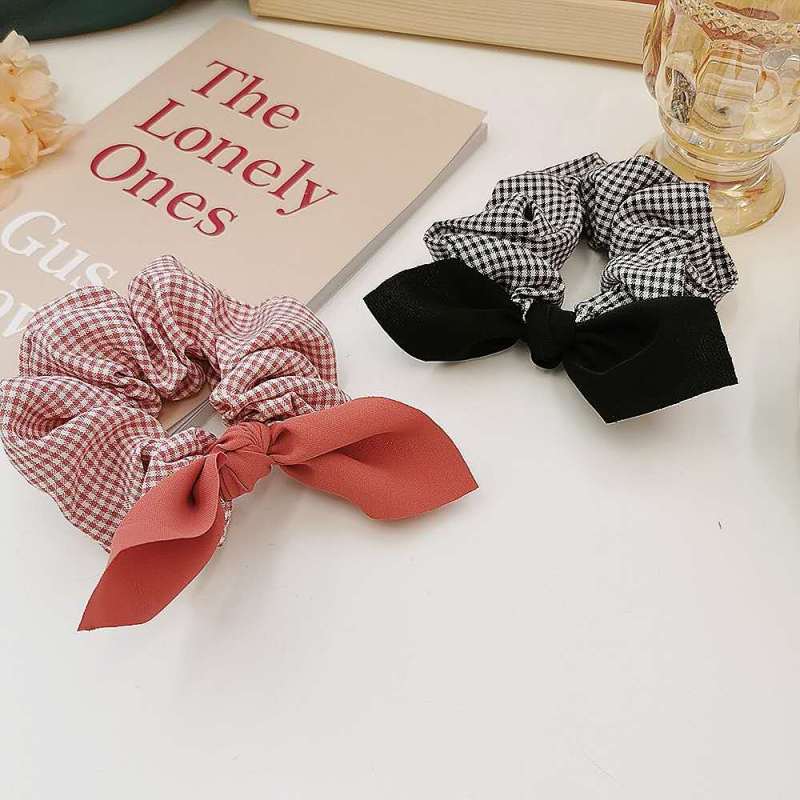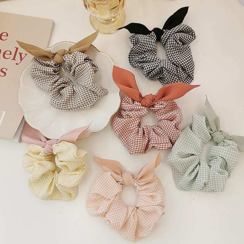法式气质韩版复古格子发圈耳朵蝴蝶结大肠圈扎发布圈艺发饰少女