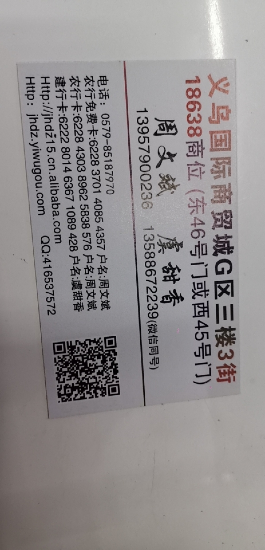 义乌国际商贸城二区45门3楼3街18638A