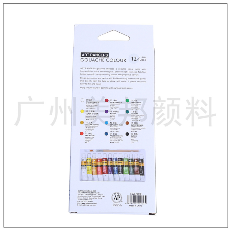 产品名称:颜料 产品款式:如图(多款可选) 产品尺寸:咨询客服 产品材质:咨询客服 产品特点:膏体细腻,色彩鲜艳 适用范围:水彩画、水粉画、手绘、墙画等