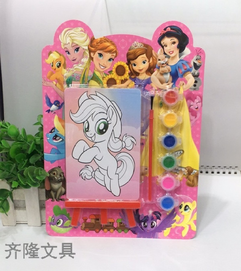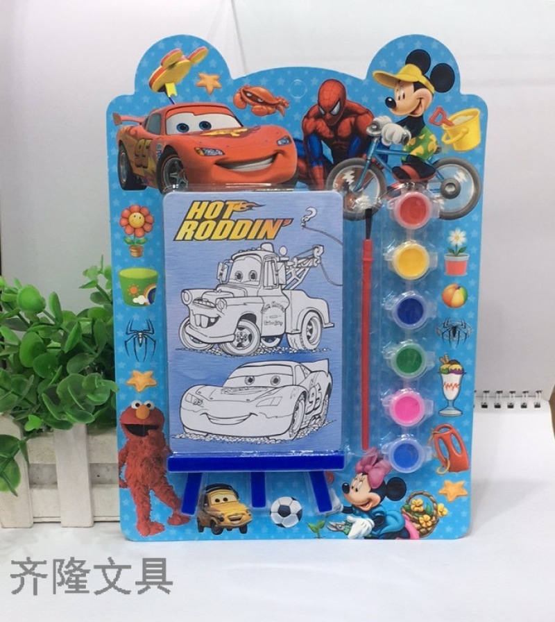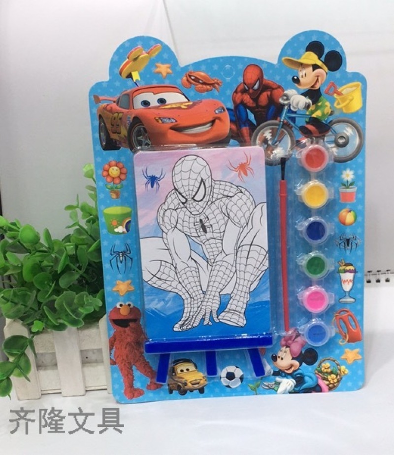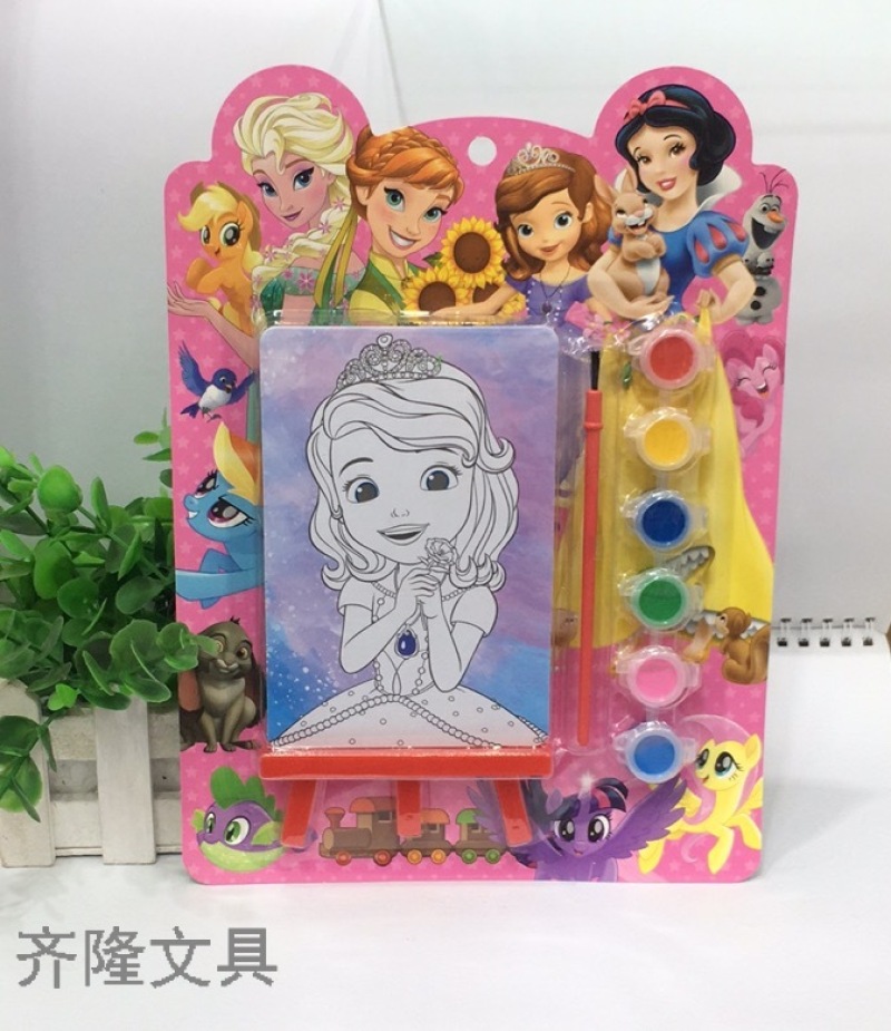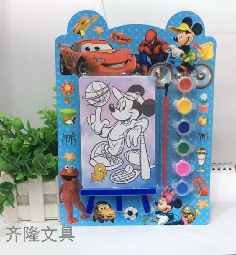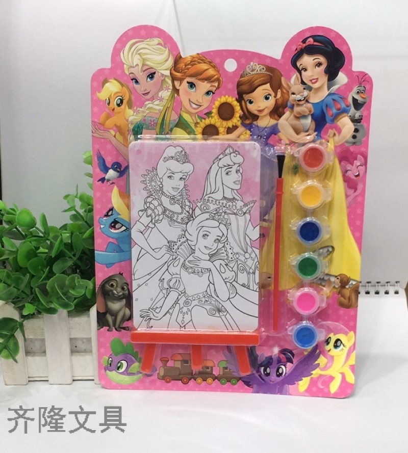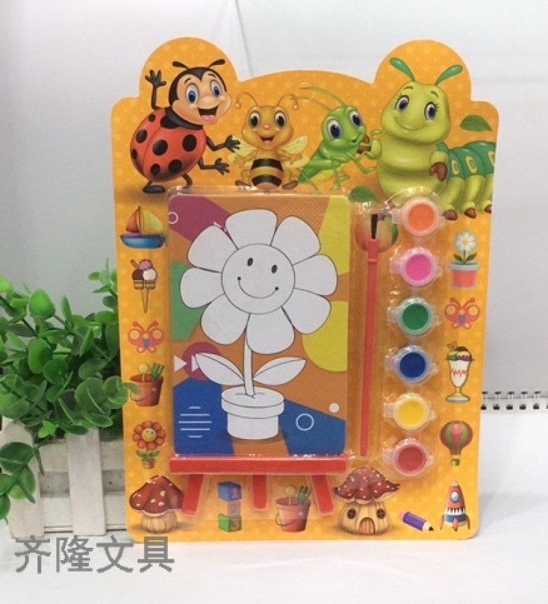 产品描述:一个涂色画板,一个画板架,一把刷子,6色颜料