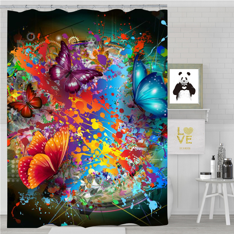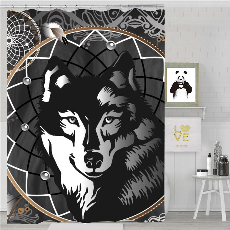 跨境地上热卖高清数码印花防水涤纶浴帘动物浴帘来图定制厂家直销