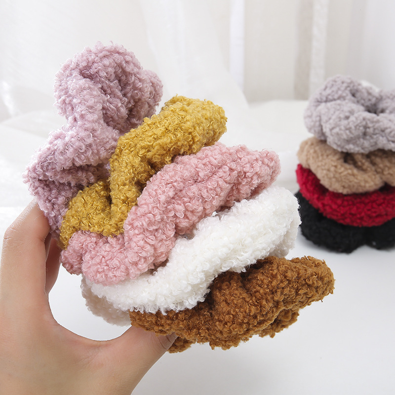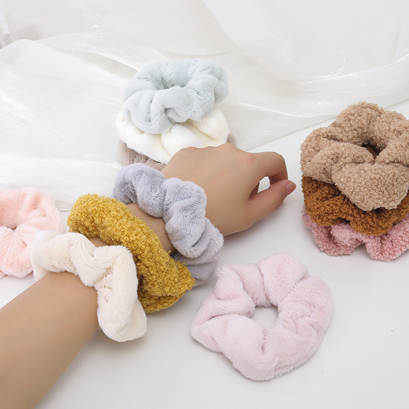 秋冬毛绒大肠圈女发圈毛毛布圈头饰羊羔毛发绳头绳头花发饰头饰品