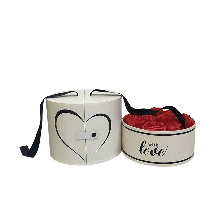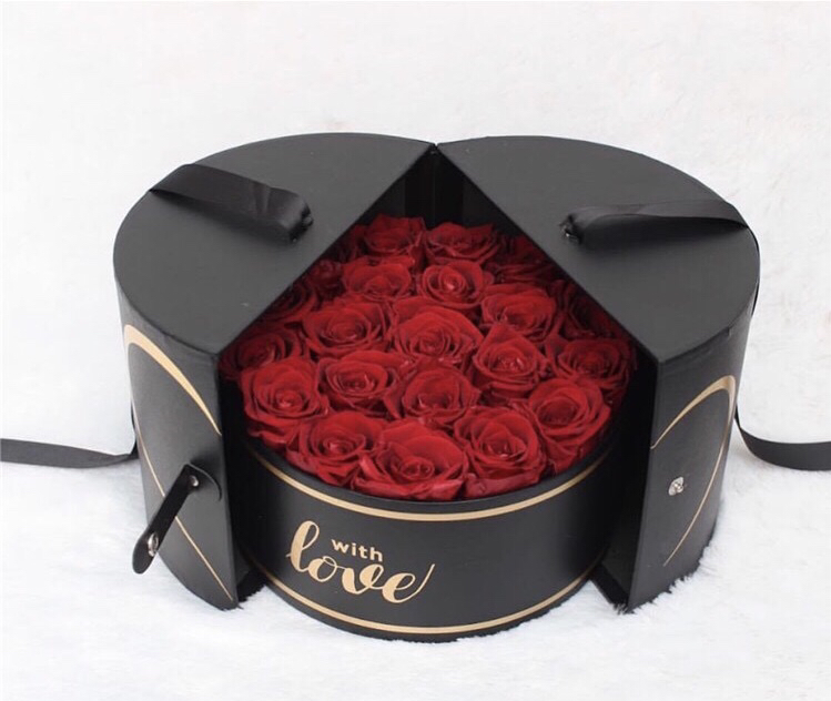 高档皮纹圆形双开鲜花礼品盒