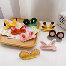 韩国秋冬新款动物兔耳朵鹿角发箍网红卡通毛线编织发卡学生发饰 投诉